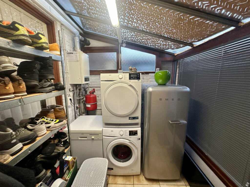 De aangebouwde, verwarmde serre met tegelvloer wordt momenteel gebruikt als bijkeuken en biedt plaats aan de wasmachine, een (extra) koelkast en de cv-installatie. Vanuit de serre heeft u direct toegang tot de zonnige tuin.