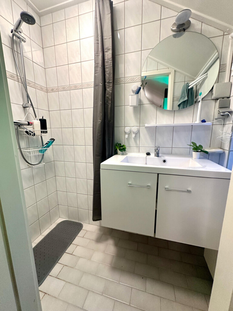 Overloop met toegang tot drie slaapkamers, allen voorzien van een praktische inbouwkast. De doucheruimte is bereikbaar via één van de slaapkamers en is uitgerust met een douche en een wastafelmeubel met verwarmde spiegel.