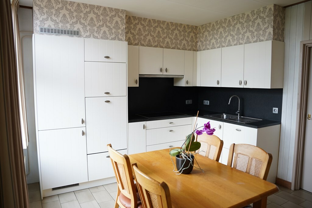 De moderne woonkeuken is voorzien van een granieten werkblad, alle apparatuur en biedt een geweldig uitzicht over de polder. Vanuit de keuken is er toegang naar de kelder.