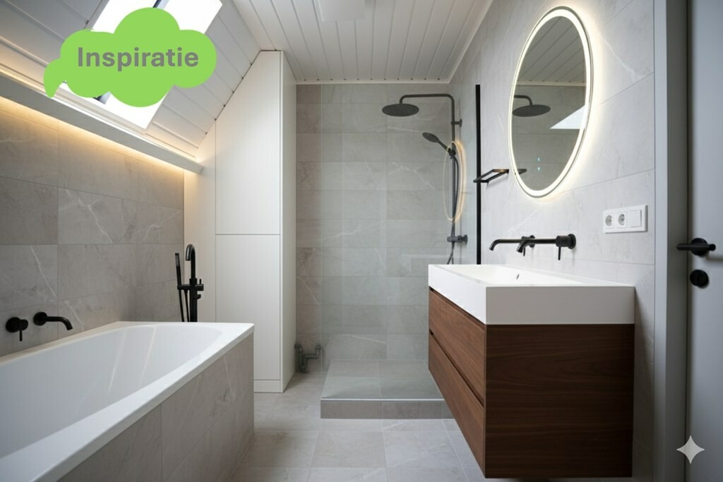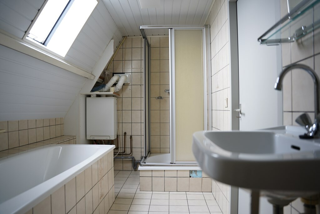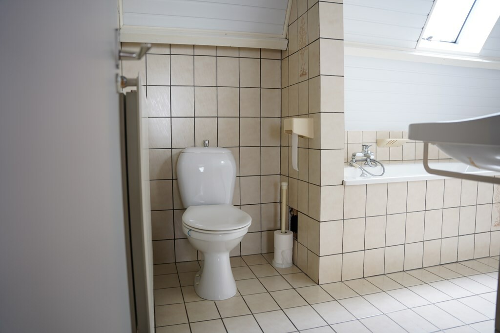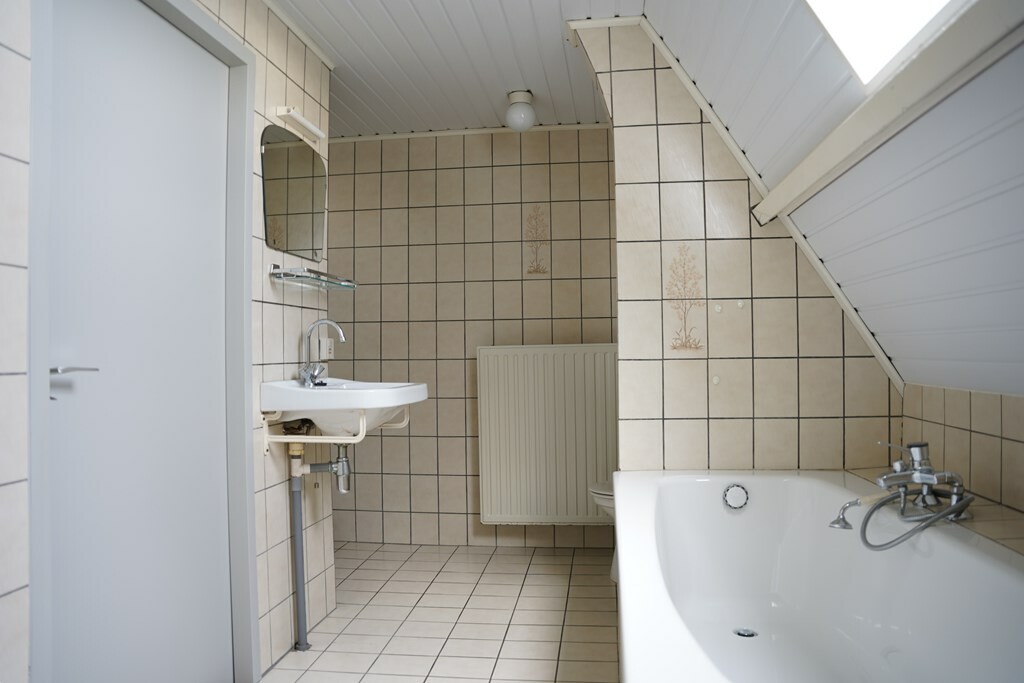 Een badkamer die van alle gemakken is voorzien: een ligbad, douchecabine, wastafel, een tweede toilet én de cv-ketel. Een modernisering is hier wenselijk, maar zorgt dat je deze helemaal naar je eigen smaak kunt aanpassen.
