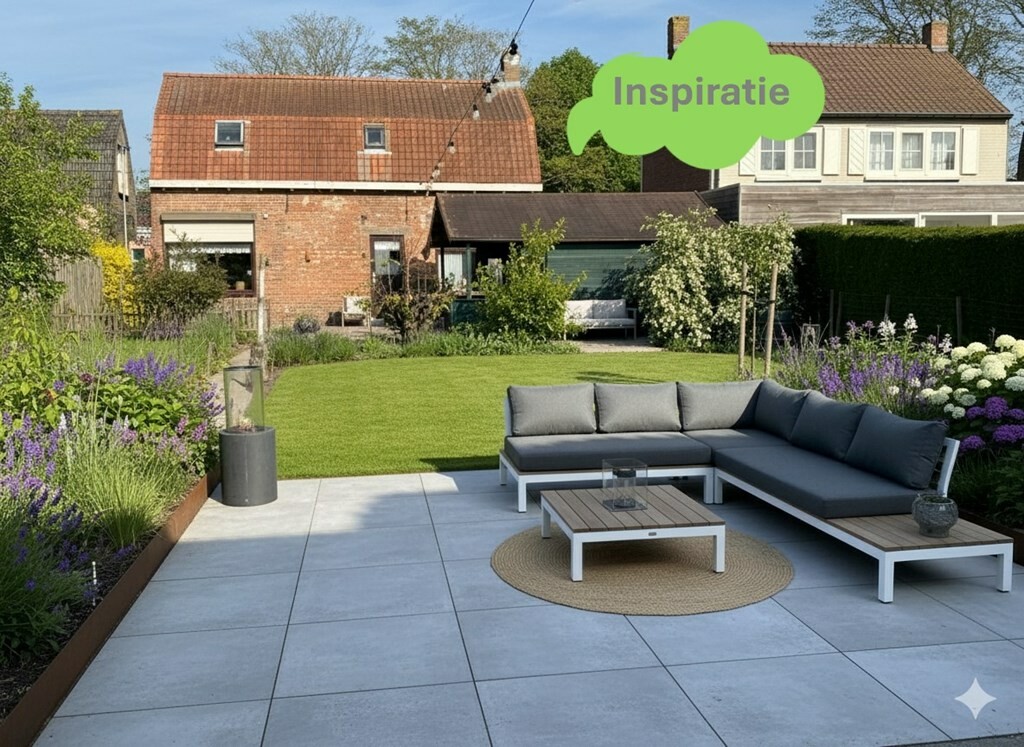 De tuin is ruim genoeg zodat je meerdere terrassen, maar ook een fijne speelplek voor de kinderen kunt maken.