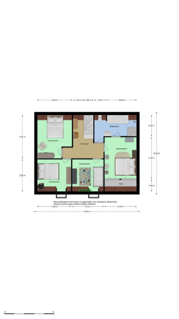 Je komt dan op de overloop met een nette laminaatvloer en een dakraam.