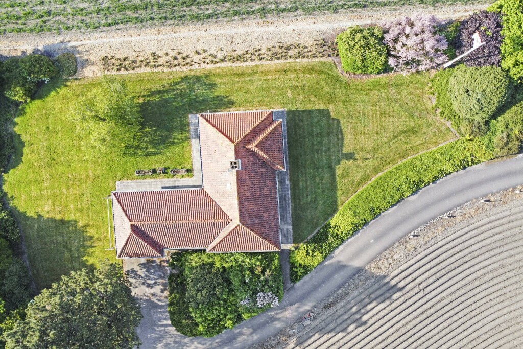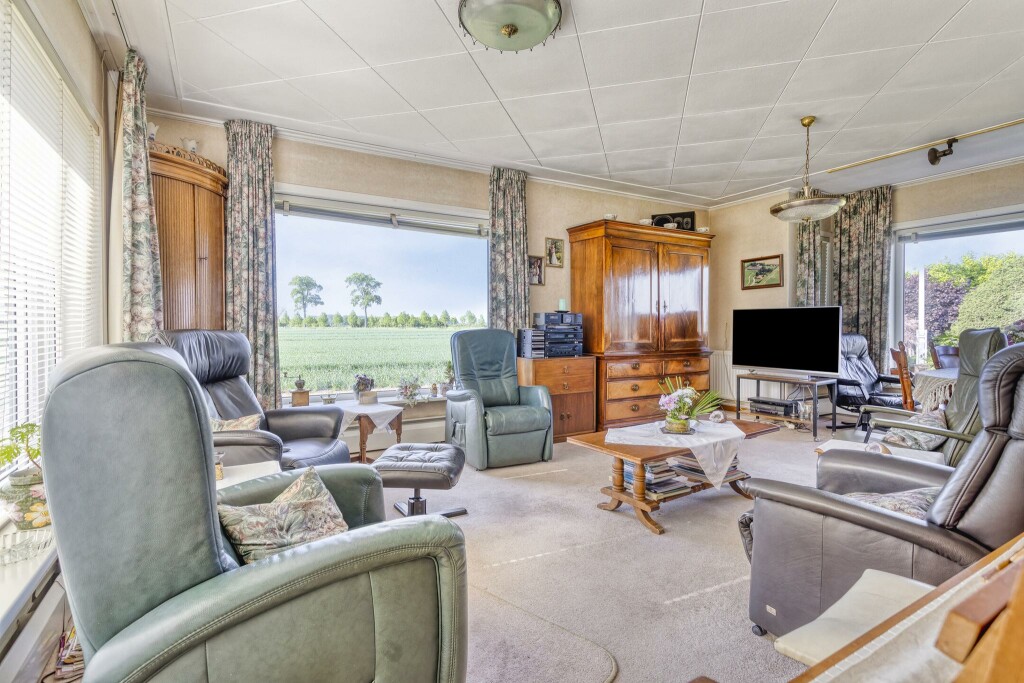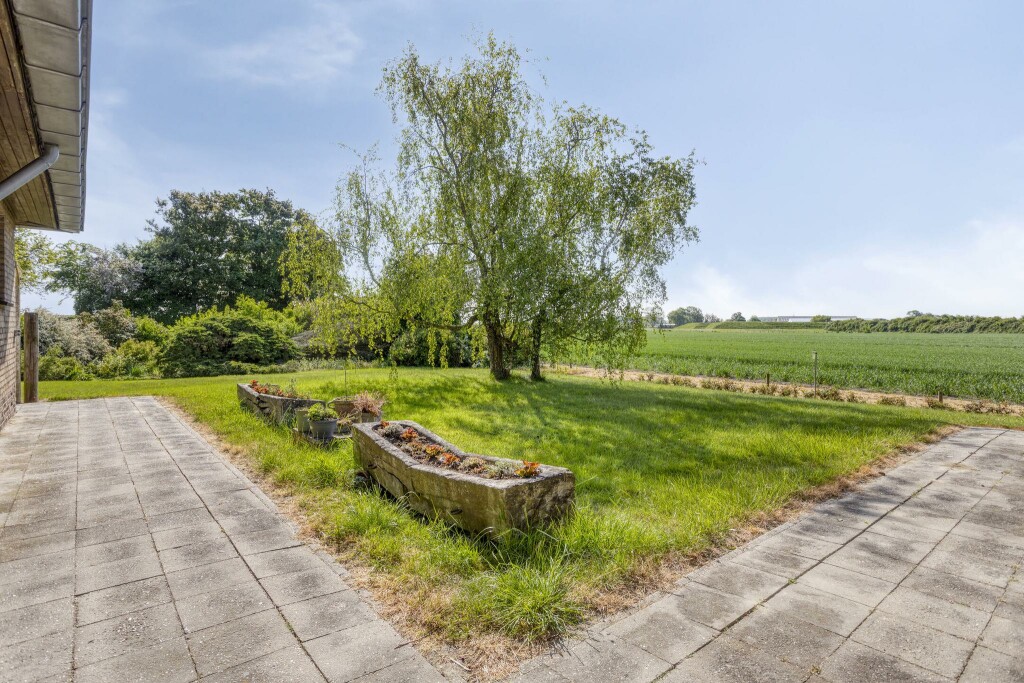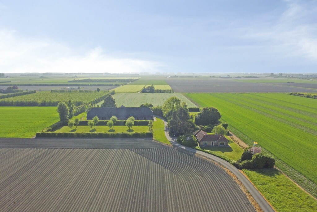 Rondom de woning ligt een royale siertuin, een ideale plek om te ontspannen en te genieten van het landelijke uitzicht. Aan de voorzijde van het perceel bevindt zich circa 1,8 hectare grond, deels in gebruik als bouwland (gedraineerd rond 1990, afslibbaarheid circa 30%, niet onderdrogend) en deels ingericht als weide. Een tweede perceel bouwland van circa 2,2 hectare ligt achter de schuur en berging.