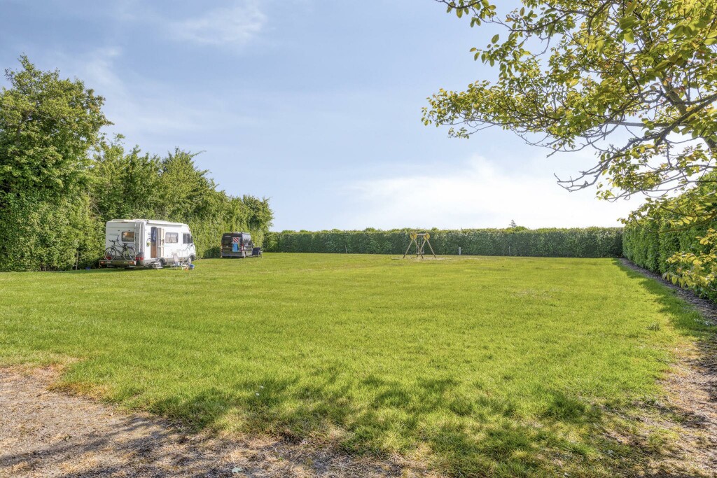 Achter de woning ligt de ruime mini-camping. De camping beschikt over 15 plaatsen en biedt ruimte en rust voor recreanten. Een ruime vrijstaande schuur (12 x 50 m) op het terrein is gedeeltelijk ingericht met sanitaire voorzieningen voor de campinggasten, waaronder twee douches, vier toiletten en vier wastafels.