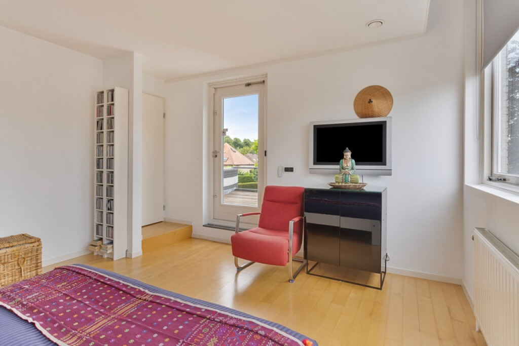 De 1e slaapkamer beschikt over een eigen dakterras met uitzicht op de tuin.