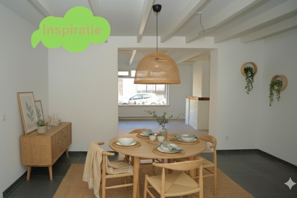 Aansluitend loop je de eetkamer in. Beide ruimtes zijn voorzien van strakke wand- en vloerafwerking die het geheel een eigentijdse uitstraling geven. Of je nu houdt van een rustige basis of een wat meer kleurrijk interieur, deze ruimte past zich moeiteloos aan jouw smaak aan.