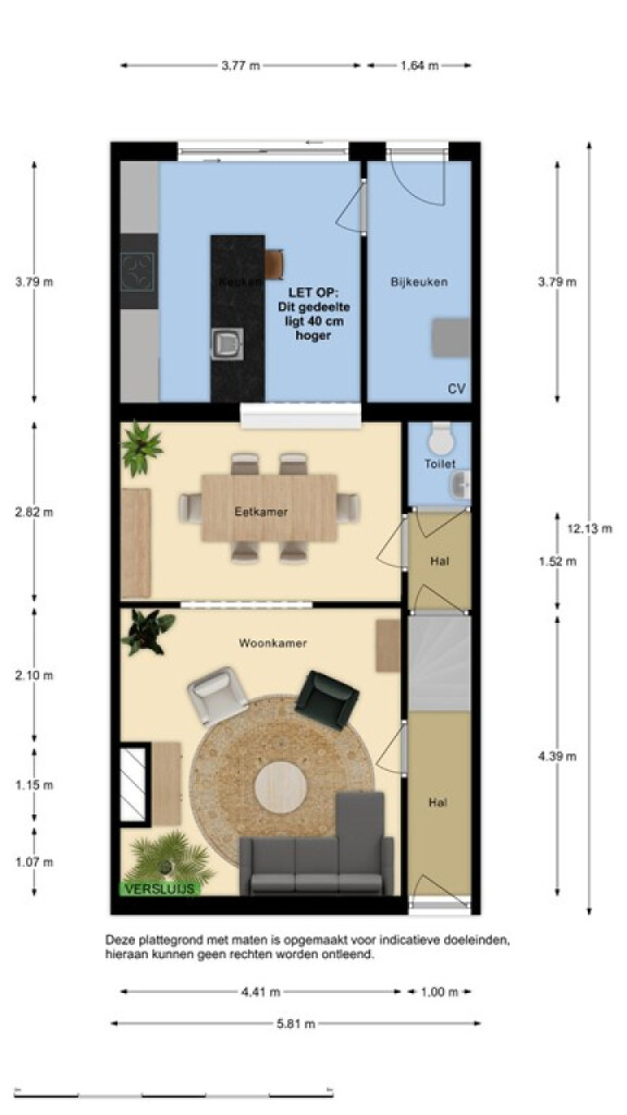 Stap binnen in de hal, waar zich de meterkast bevindt en de trap naar de verdieping je uitnodigt om het huis verder te ontdekken.