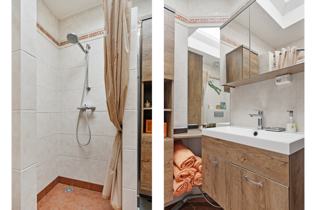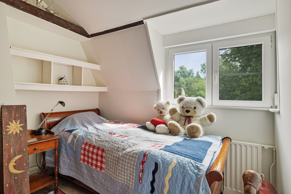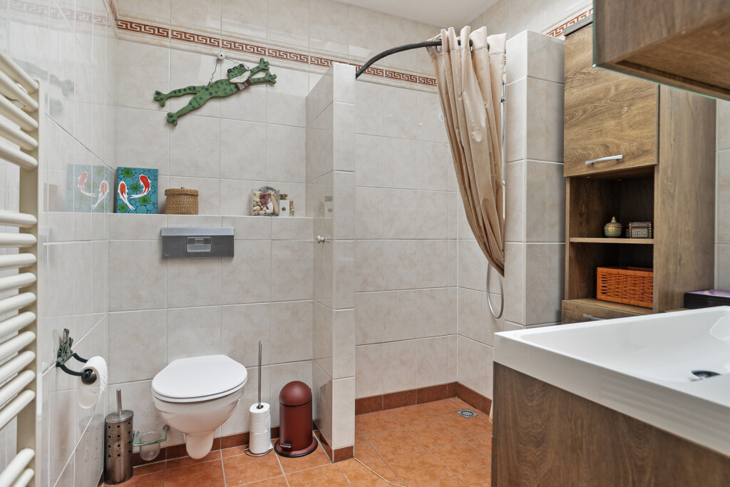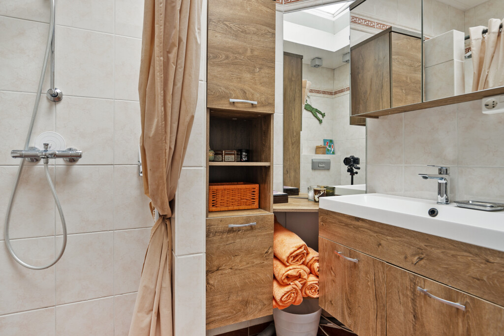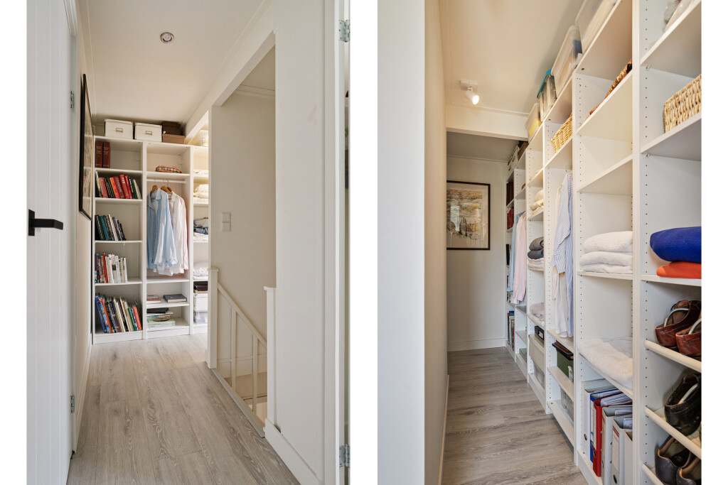 Via de overloop bereikt u drie comfortabele en ruime slaapkamers, waarvan één slaapkamer is uitgerust met een wastafelmeubel. Een bijzonder pluspunt van deze woning is de walk-in closet, die extra opslagruimte biedt.