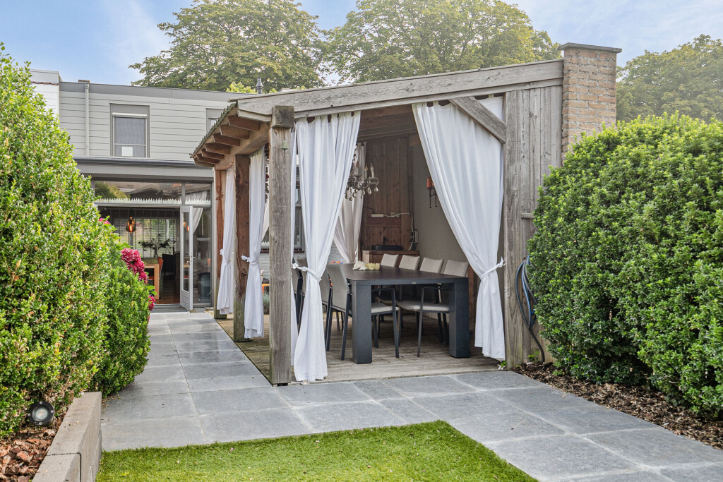 De onderhoudsvriendelijke en gerenoveerde (2019) achtertuin heeft een zuidwestelijke ligging. De tuin beschikt over een ruime overkapping, waar u heerlijk kunt ontspannen of dineren. Naast de overkapping beschikt de tuin ook over een ruim terras met een gezellige tuinlounge en voldoende ruimte voor het creëren van een zit- en/of eethoek. Daarnaast biedt de achtertuin een handig tuinhuis, wat zorgt voor extra opslagruimte en veelzijdigheid.