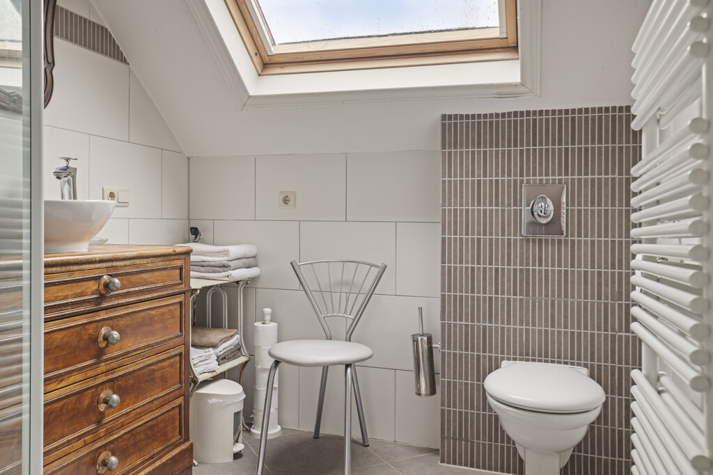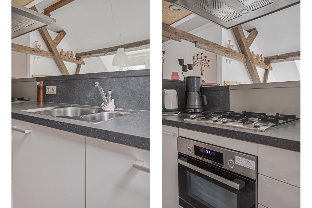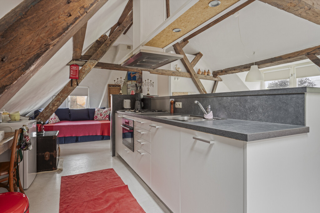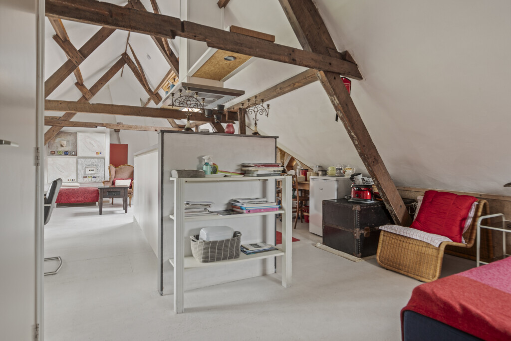 De zolder is op een handige manier omgebouwd tot een zelfstandig appartement. Hier treft u een woonkamer en een keuken die is voorzien van een gaskookplaat, oven, vaatwasser en koelkast. Daarnaast beschikt de zolder over een slaapkamer en een badkamer met douche, wastafelmeubel en toilet. De zolder is ideaal voor oudere kinderen of gasten.
