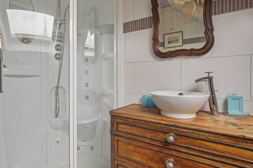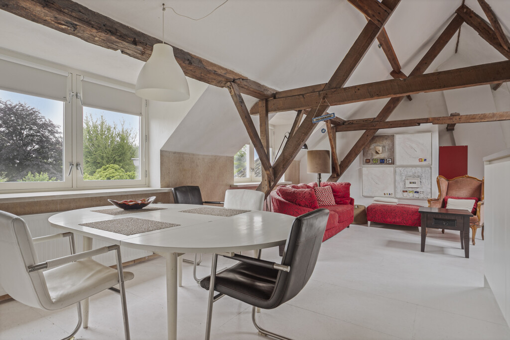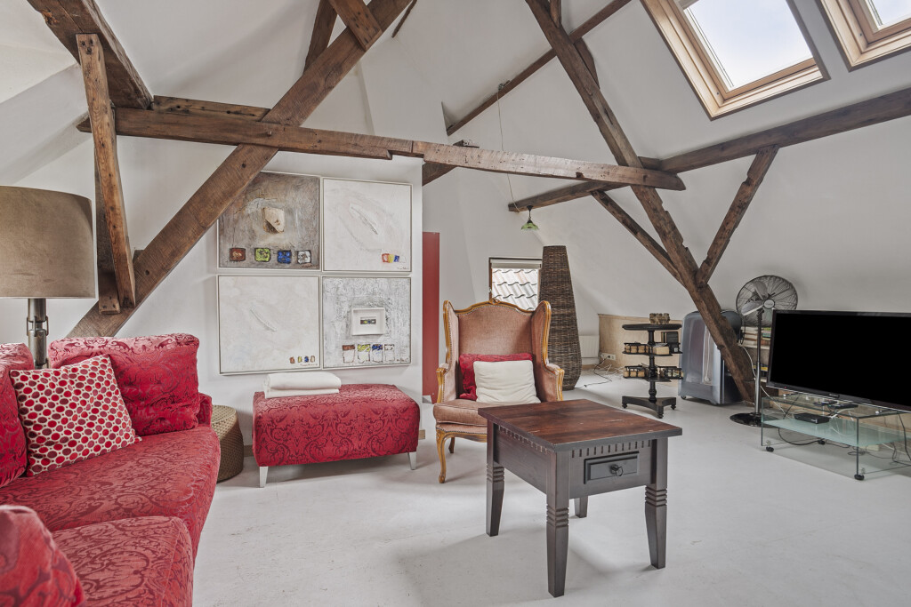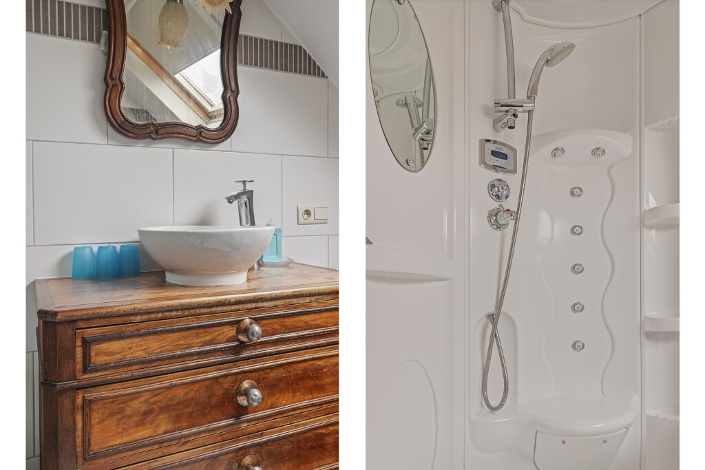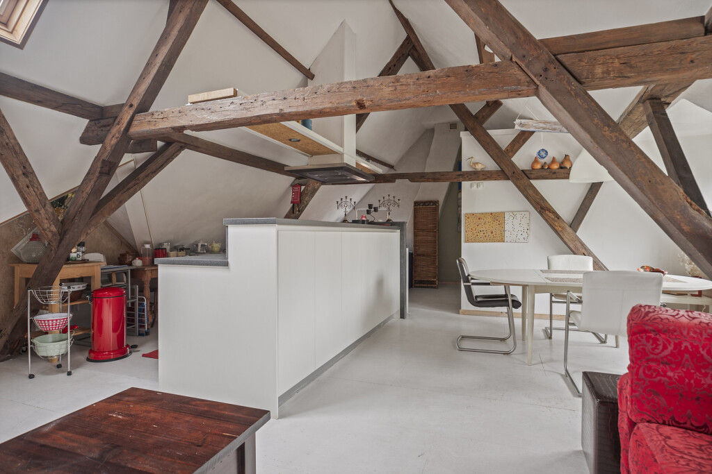 De zolder is op een handige manier omgebouwd tot een zelfstandig appartement. Hier treft u een woonkamer en een keuken die is voorzien van een gaskookplaat, oven, vaatwasser en koelkast. Daarnaast beschikt de zolder over een slaapkamer en een badkamer met douche, wastafelmeubel en toilet. De zolder is ideaal voor oudere kinderen of gasten.