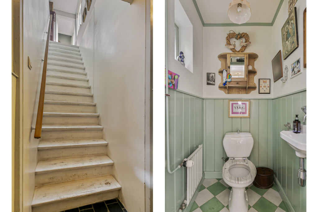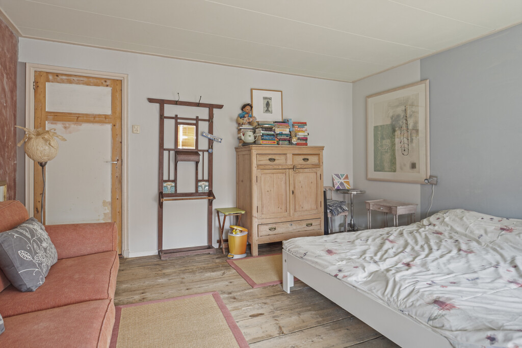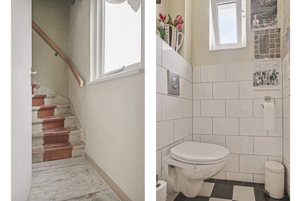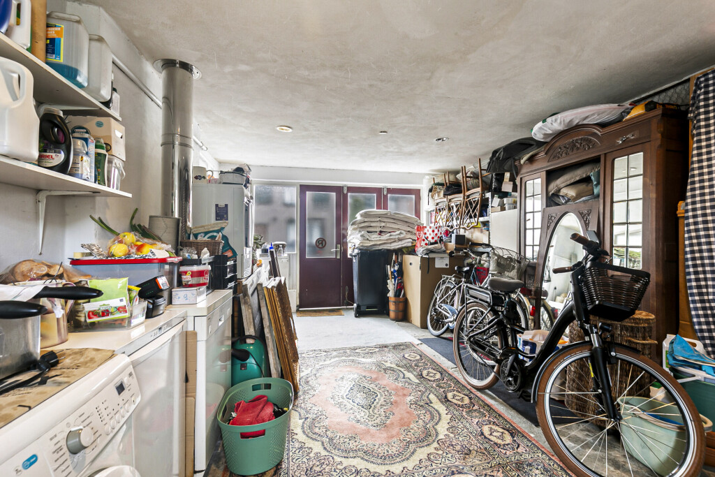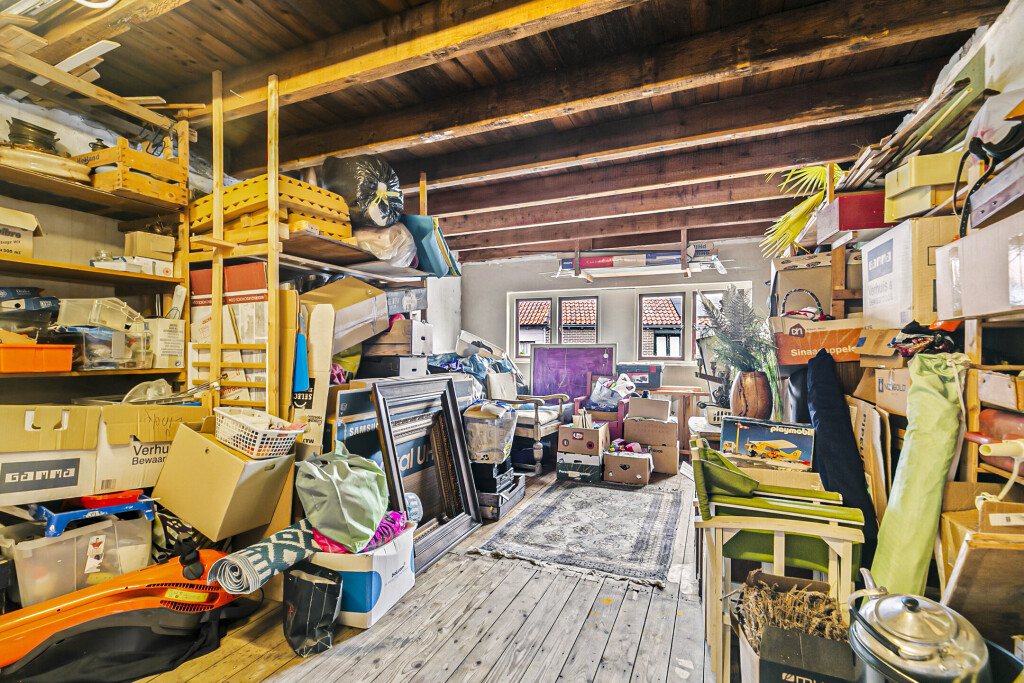 Bij binnenkomst vindt u direct de royale atelier, ideaal voor ondernemers om te gebruiken als winkel of kantoorruimte. De hal met toiletruimte leidt naar een gezellige woonkamer met een open keuken die is voorzien van inbouwapparatuur zoals een gaskookplaat, oven en koelkast. Daarnaast is er een grote kamer aanwezig die flexibel gebruikt kan worden, bijvoorbeeld als extra woonkamer of werkruimte. Aan de zijkant van de woning bevindt zich een berging die momenteel wordt gebruikt als opslag, deze ruimte biedt mogelijkheden voor hobbyisten en kunstenaars. Vanuit de hal heeft u tevens toegang tot de kelder, ideaal voor extra opslagruimte.