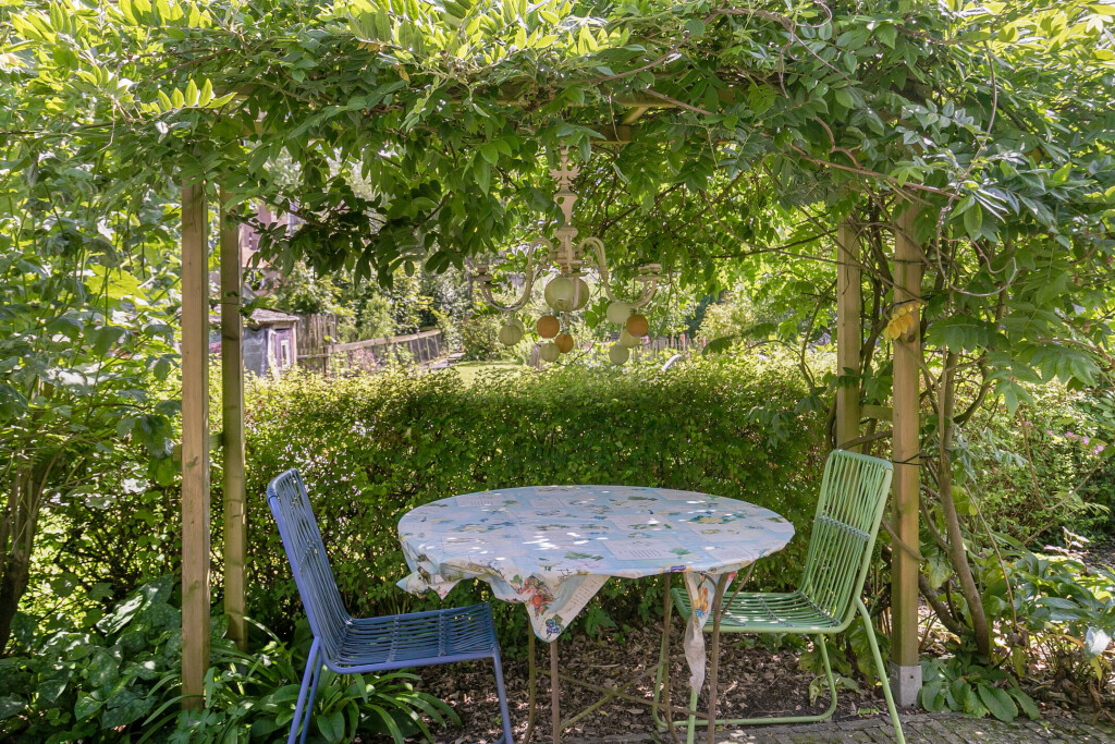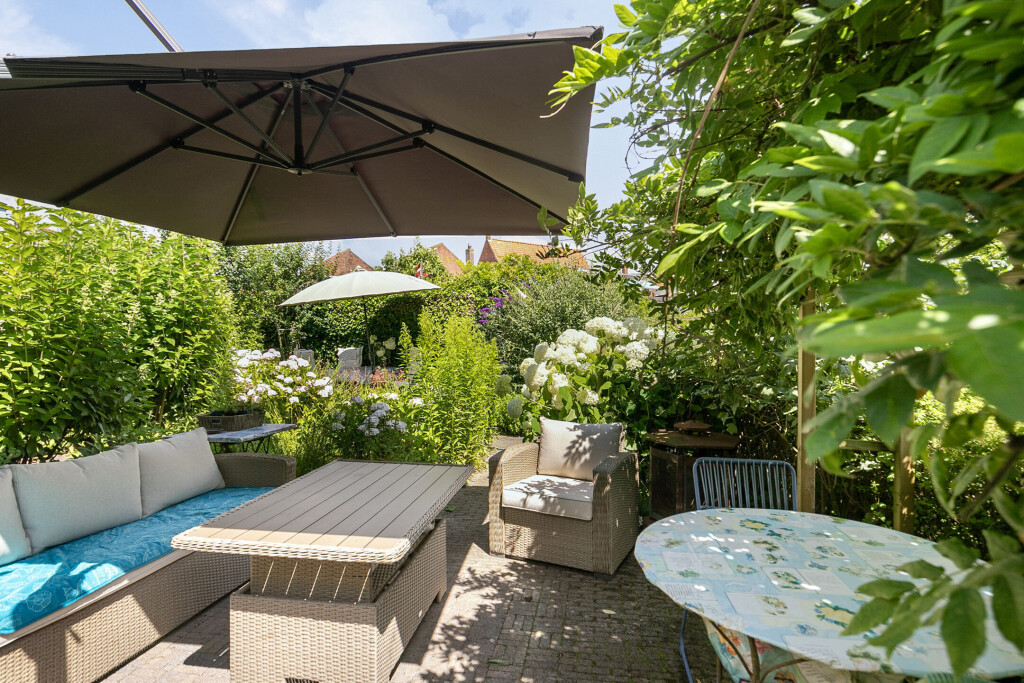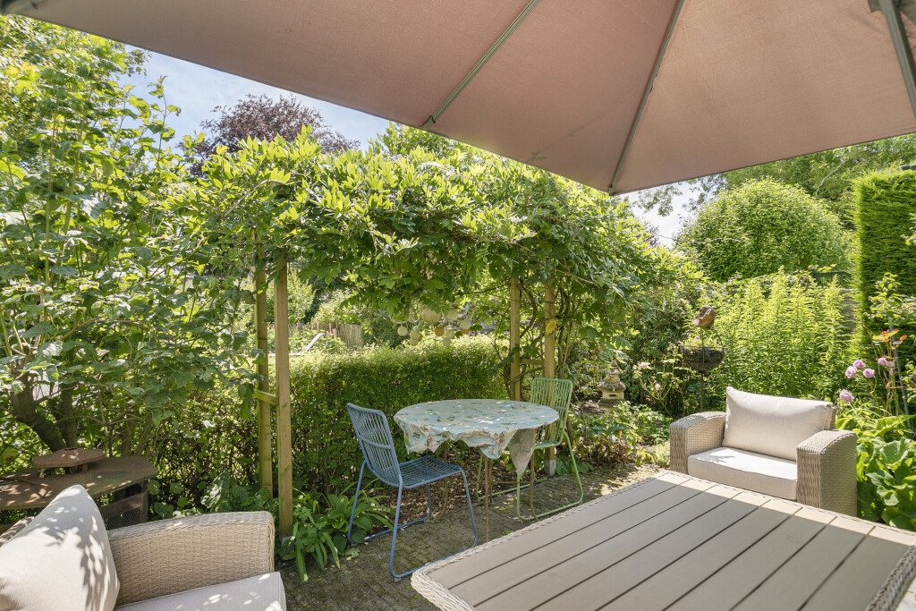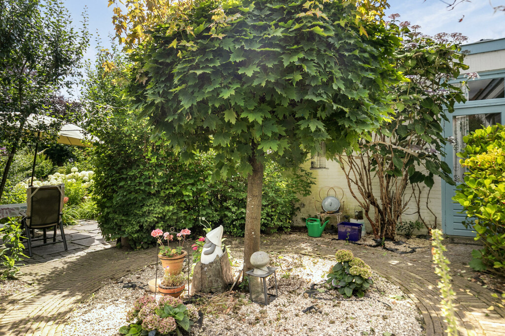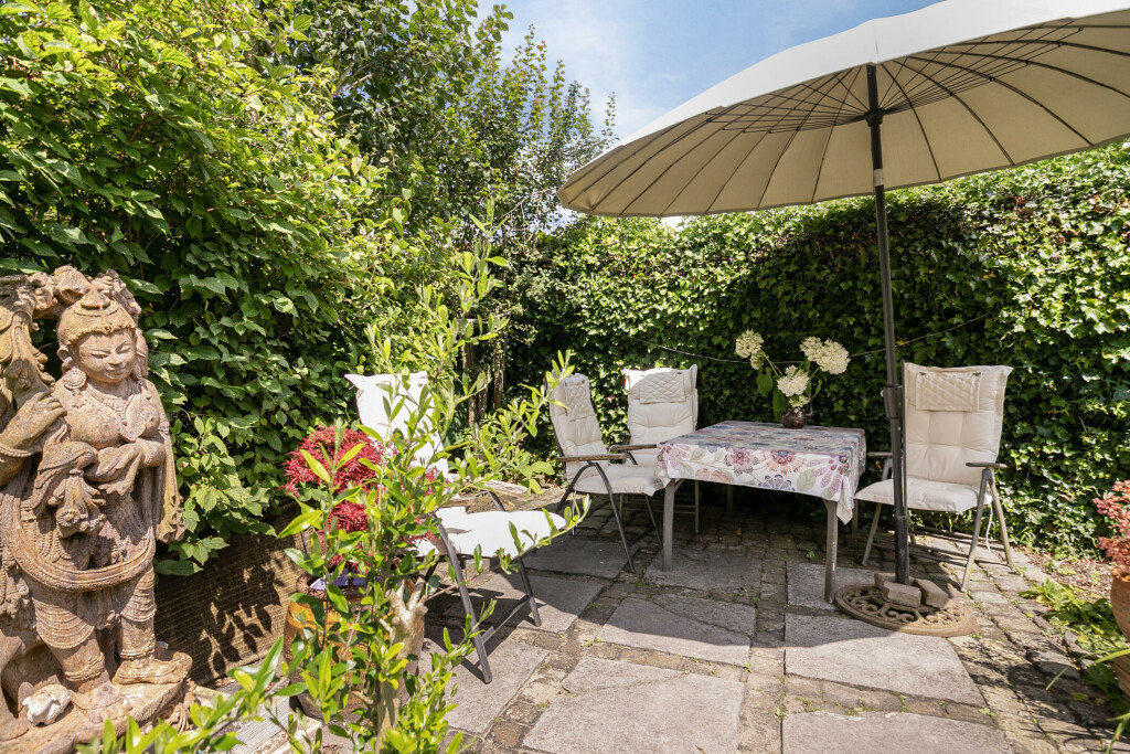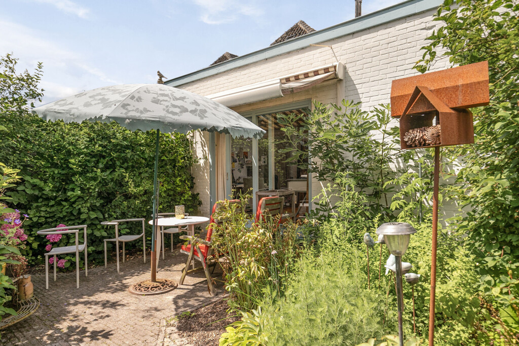 De woning beschikt over een diepe en zonnige achtertuin op het zuiden, waardoor u het hele jaar door van de zon kunt genieten. Het terras biedt voldoende ruimte om een gezellige zit- en/of eethoek te creëren, perfect voor zomerse dagen en avonden. Daarnaast beschikt de woning over een parkeerplaats met ruimte voor minimaal 6 auto's en een betonnen vloer in de tuin, geschikt voor het plaatsen van een carport of een berging.
