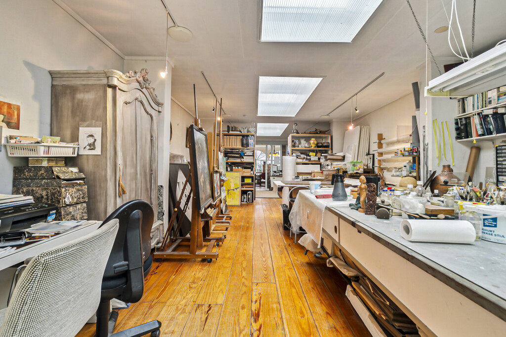 * ruime winkel- en werkruimte op de begane grond;