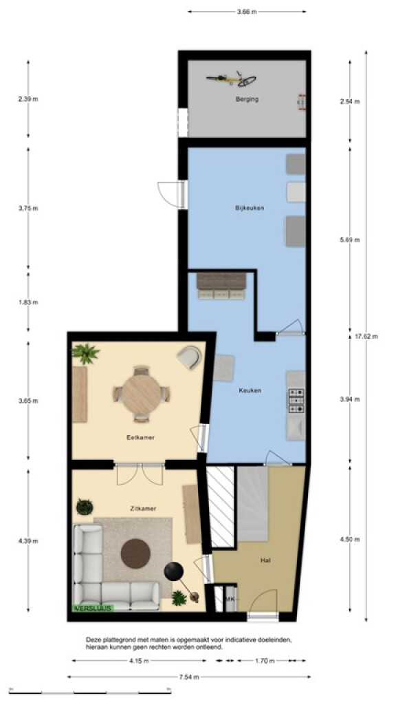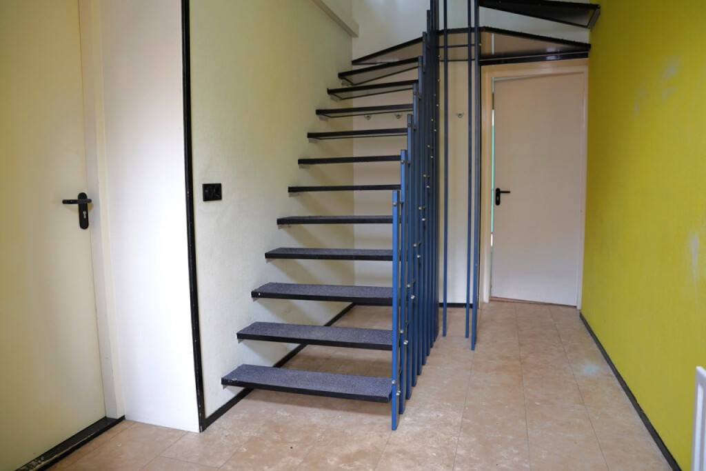 Achter de keuken ligt de bijkeuken met aansluiting voor de wasmachine en extra opbergruimte. Een toilet ontbreekt op de begane grond, maar kan hier eventueel worden gerealiseerd bij een verbouwing.