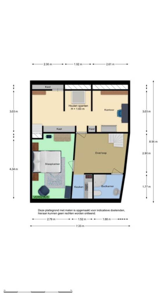 Daarnaast zijn er een slaapkamer en een multifunctionele kamer met een Velux-dakraam. Deze laatste kamer heeft een iets lagere doorgang en is te gebruiken als logeerkamer, werkkamer of hobbyruimte.
