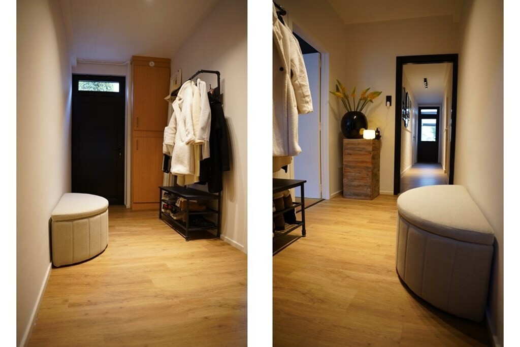 Bij binnenkomst in de lange gang voel je al meteen: dit is geen standaard huis. Aan weerszijden bevinden zich diverse ruimtes met elk hun eigen sfeer.