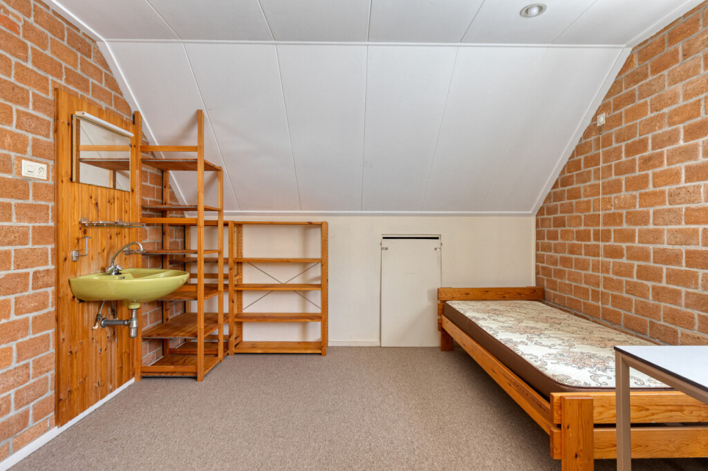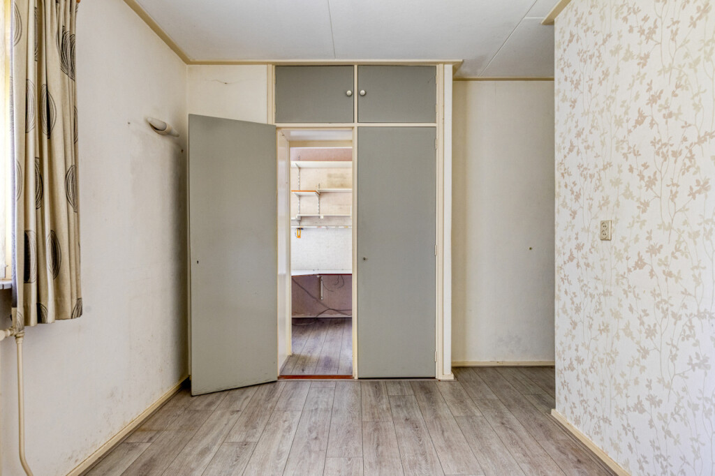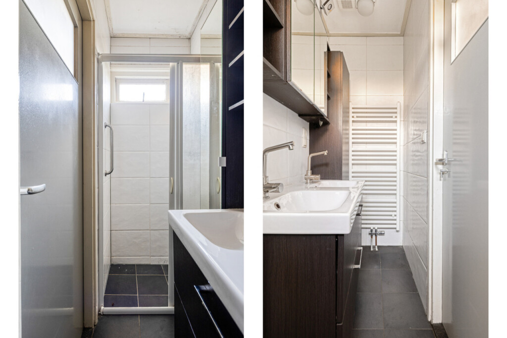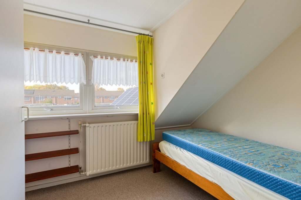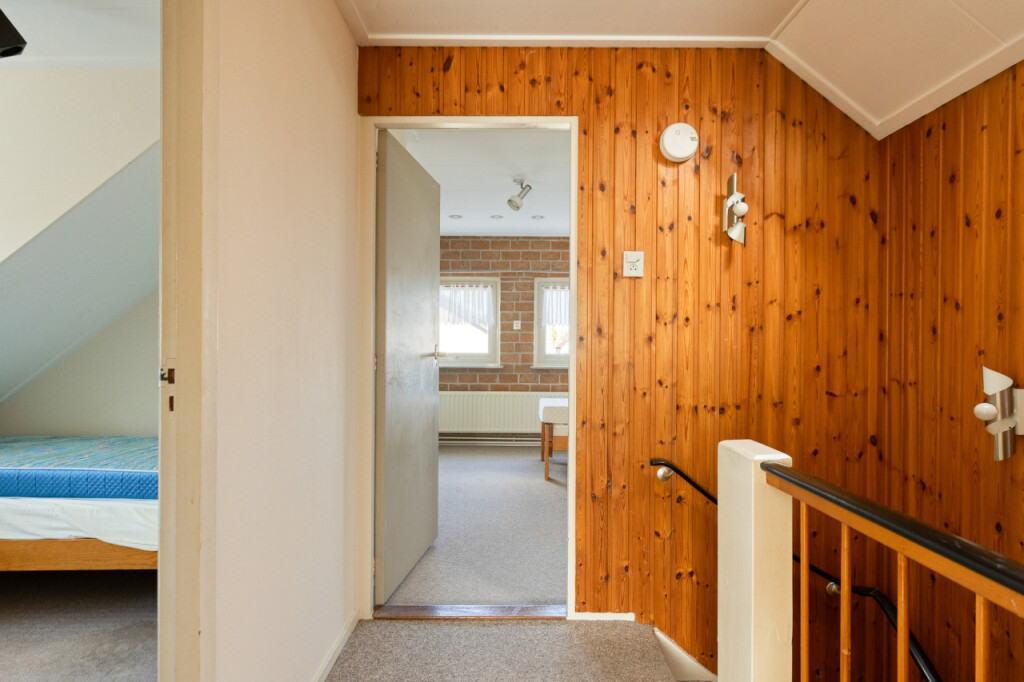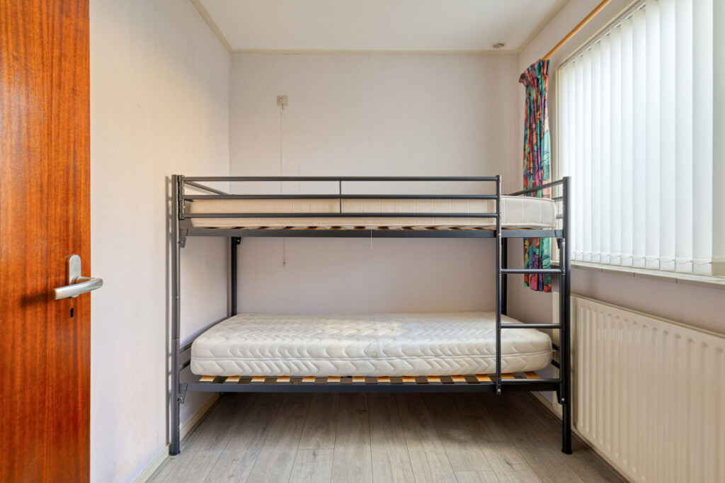 De eerste verdieping biedt verrassend veel ruimte met twee royale slaapkamers en een middelgrote kamer die perfect kan dienen als kinderkamer, hobbyruimte of thuiswerkplek. Ook hier kun je met een moderne afwerking een sfeervolle verdieping creëren.
