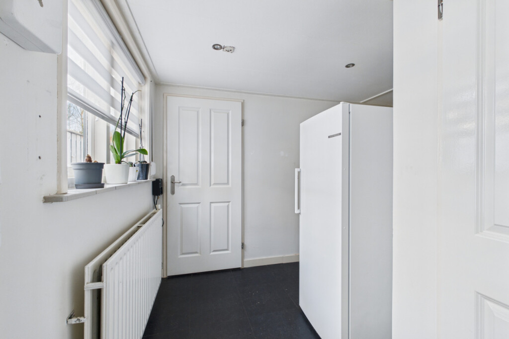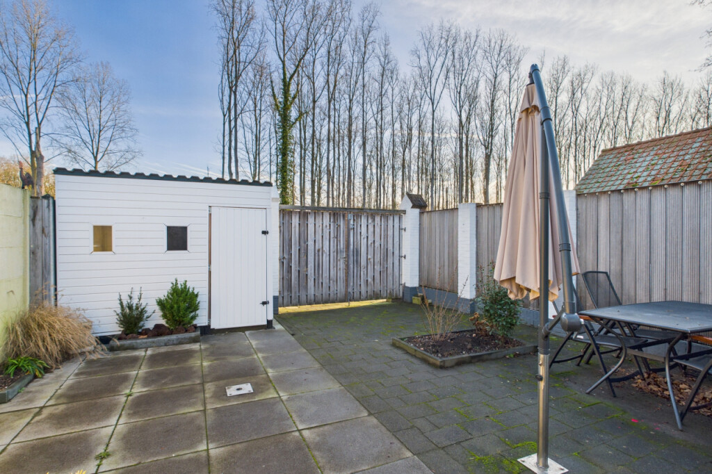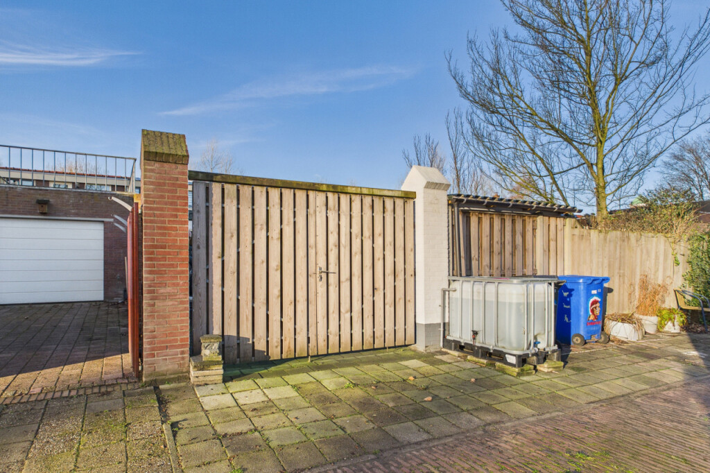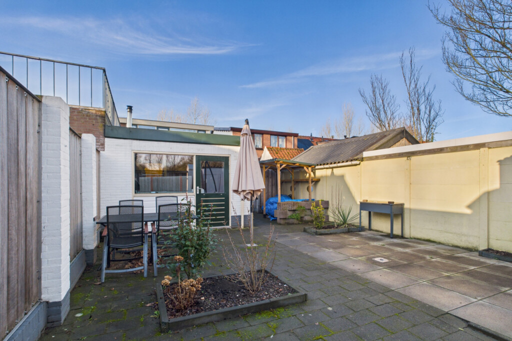 De achtertuin is onderhoudsvriendelijk aangelegd en ligt op het oosten, waardoor je hier in de ochtend en vroege middag heerlijk van de zon kunt genieten. De tuin is grotendeels voorzien van terras met een enkele plantenborder en beschikt over een eigen achterom. Er is een aangebouwde berging aan de woning en daarnaast een vrijstaande houten berging, ideaal voor fietsen, tuingereedschap en extra opslag.