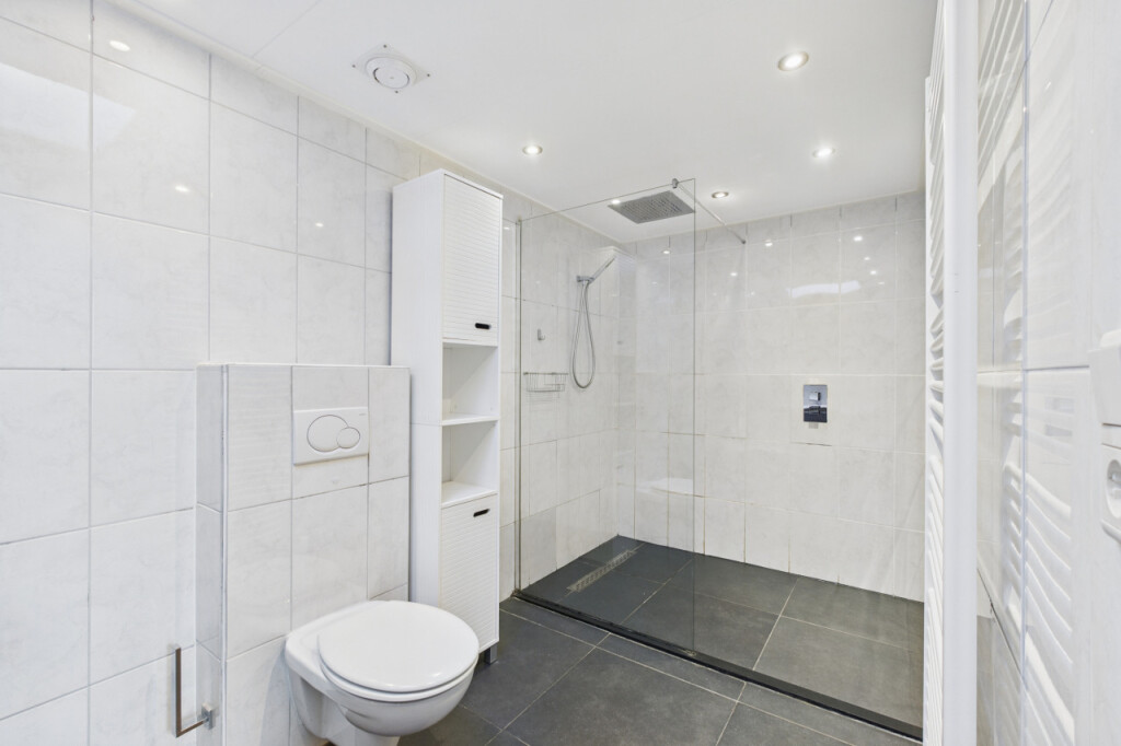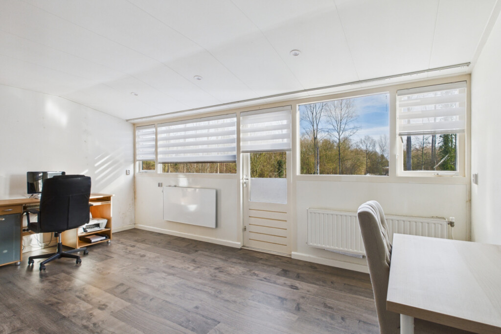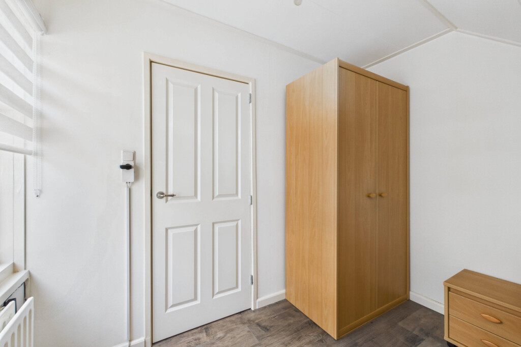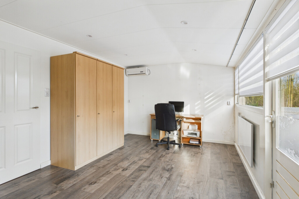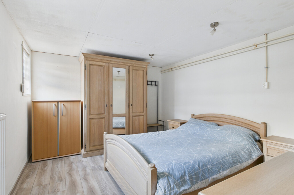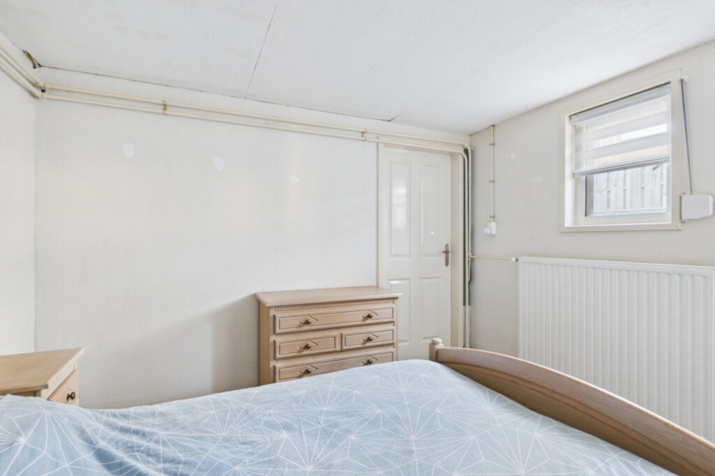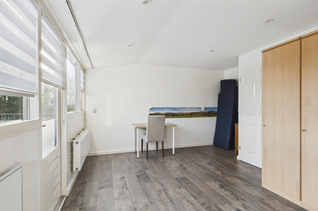 In de aanbouw vind je de badkamer met inloopdouche, wastafel met meubel en spiegelkast en het toilet, evenals de aparte witgoedruimte met boiler. Daarnaast is hier een ruime en comfortabele slaapkamer gerealiseerd. Dit was voorheen de garage en kan desgewenst relatief eenvoudig weer worden teruggebracht naar een garagefunctie.
