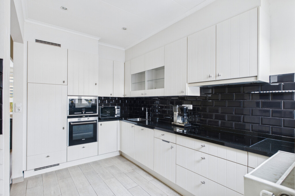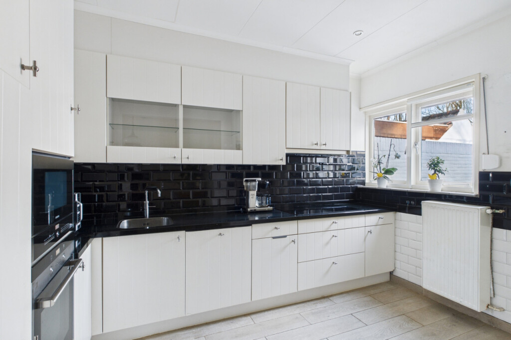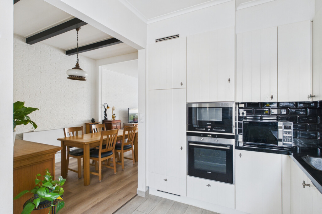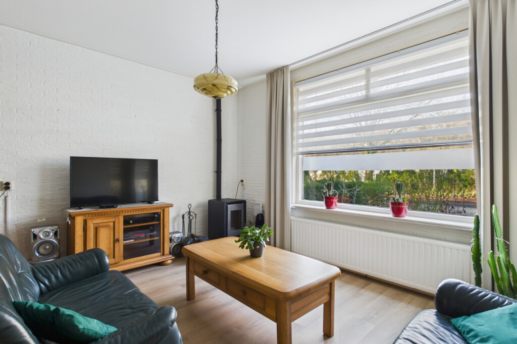 Je komt de woning binnen in de hal met trapopgang naar de eerste verdieping. Vanuit de hal bereik je de woonkamer, een sfeervolle ruimte waar de pelletkachel zorgt voor warmte en gezelligheid. Aansluitend bevindt zich de open keuken, geplaatst in een hoekopstelling en voorzien van diverse inbouwapparatuur, waaronder een inductiekookplaat, afzuigkap, magnetron, oven, koelkast, vaatwasser en spoelbak met Quooker kraan. Vanuit de woonkamer is tevens de praktische kelderkast bereikbaar.