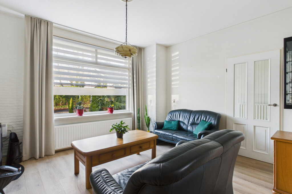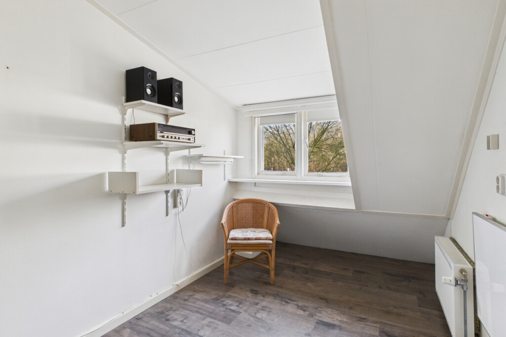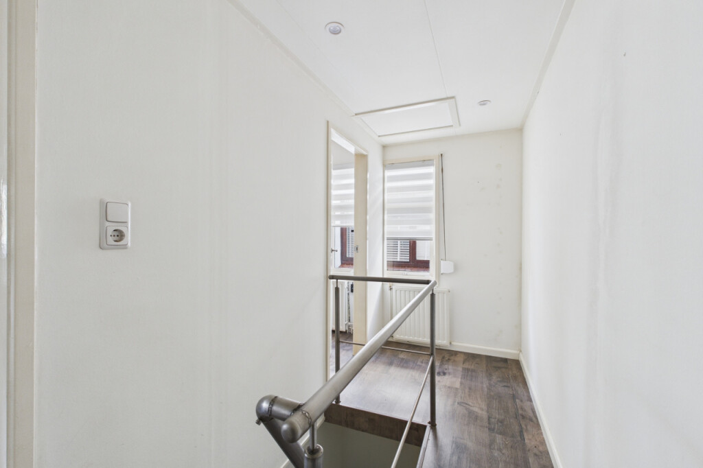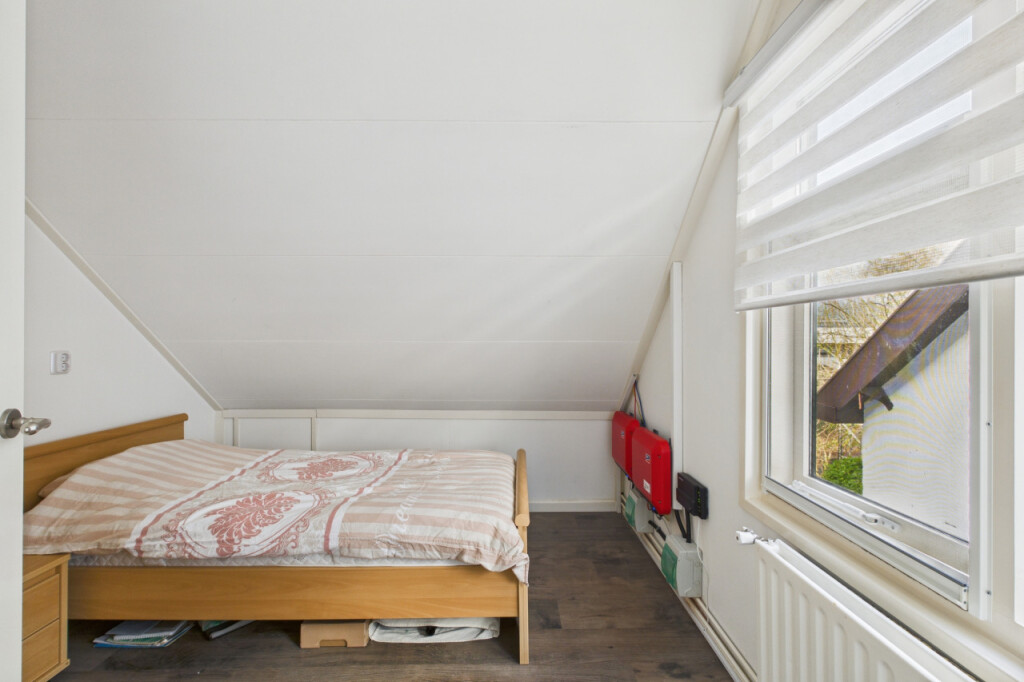 Op de eerste verdieping heb je vanaf de overloop toegang tot drie slaapkamers. De ruime hoofdslaapkamer is opgebouwd en beschikt over een loopdeur naar het platte dak. De tweede slaapkamer is voorzien van een dakkapel, wat zorgt voor extra licht en ruimte en de derde slaapkamer is eveneens van een prettig formaat.