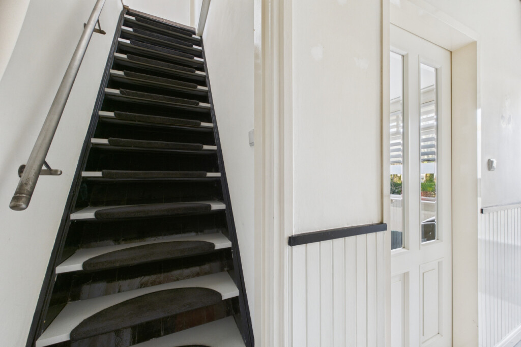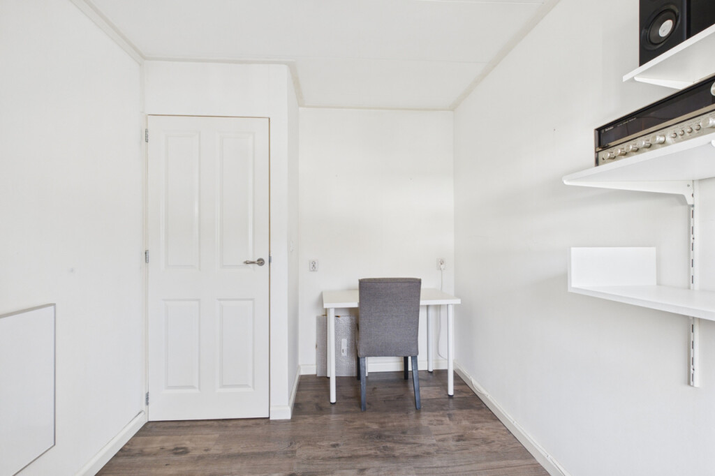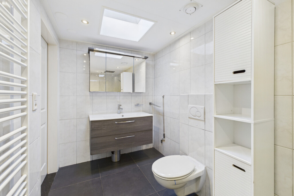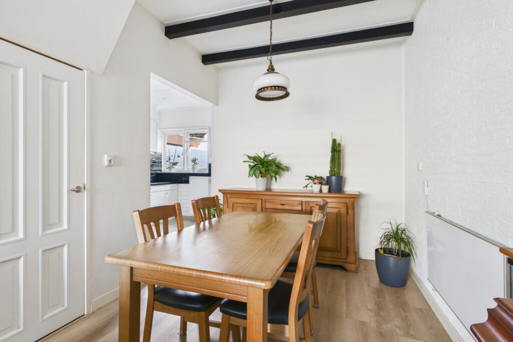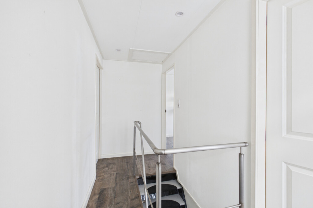 Op de eerste verdieping heb je vanaf de overloop toegang tot drie slaapkamers. De ruime hoofdslaapkamer is opgebouwd en beschikt over een loopdeur naar het platte dak. De tweede slaapkamer is voorzien van een dakkapel, wat zorgt voor extra licht en ruimte en de derde slaapkamer is eveneens van een prettig formaat.