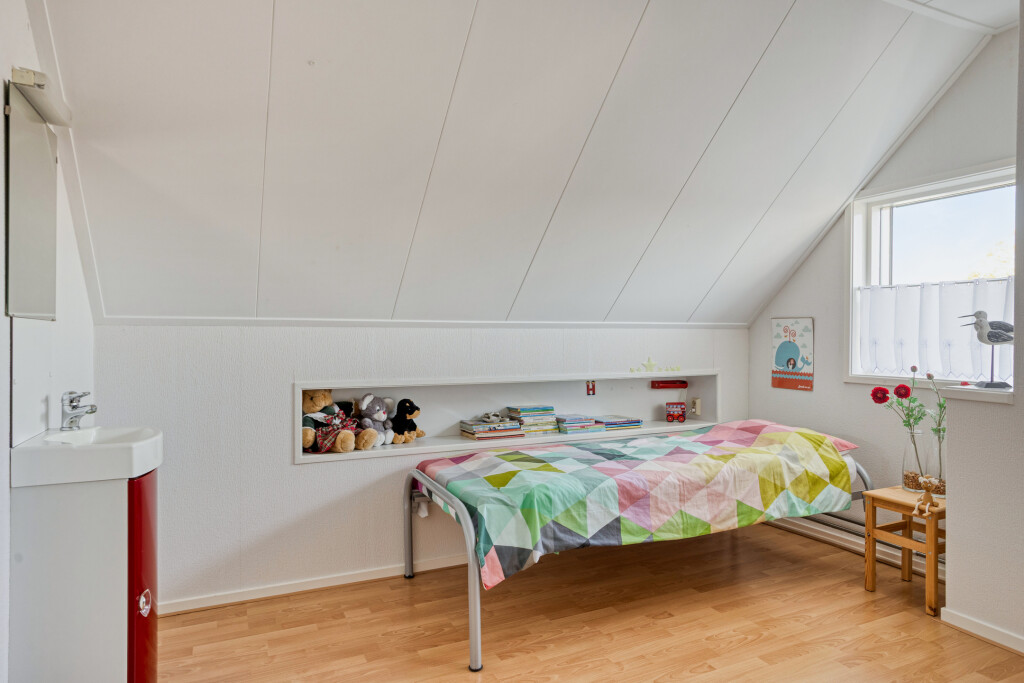 Er zijn 3 slaapkamers voorzien van een laminaatvloer of vloerbedekking, rolluiken en 2 slaapkamers beschikken over een wastafel. De overloop en de kleine slaapkamer beschikken beide over een Velux-dakraam, wat zorgt voor extra lichtinval.