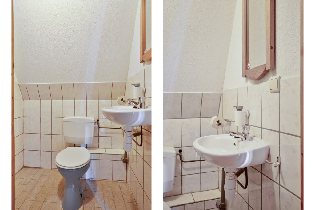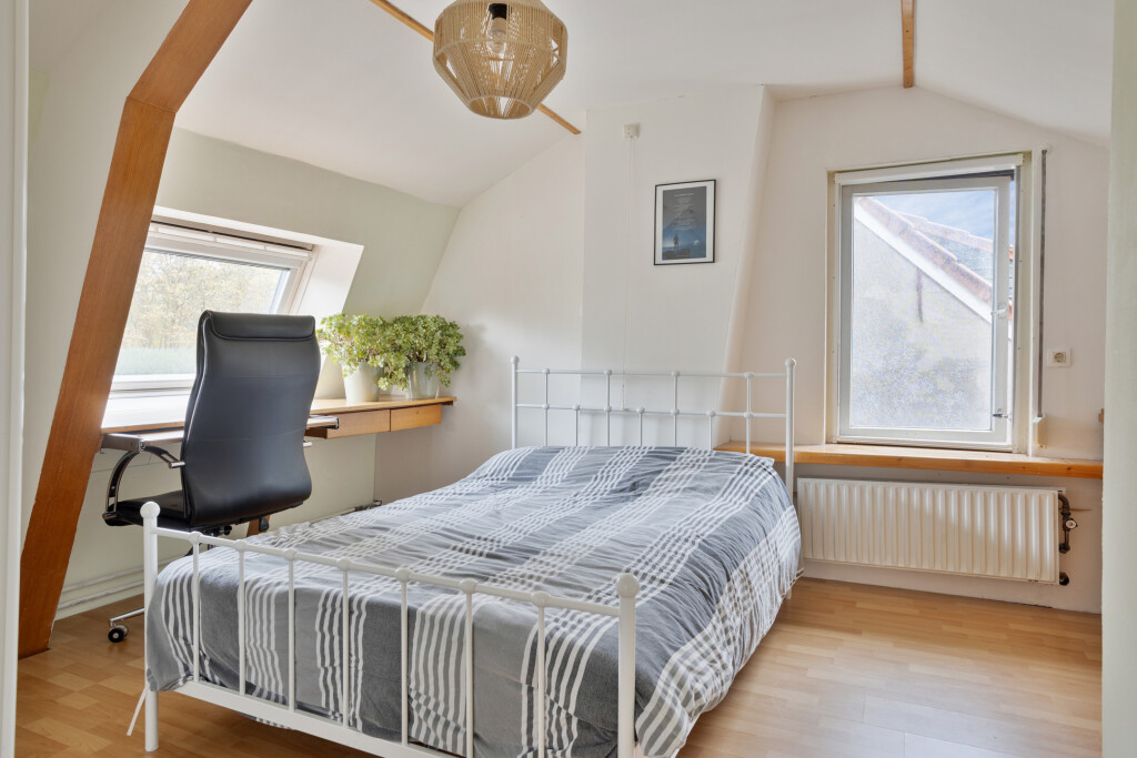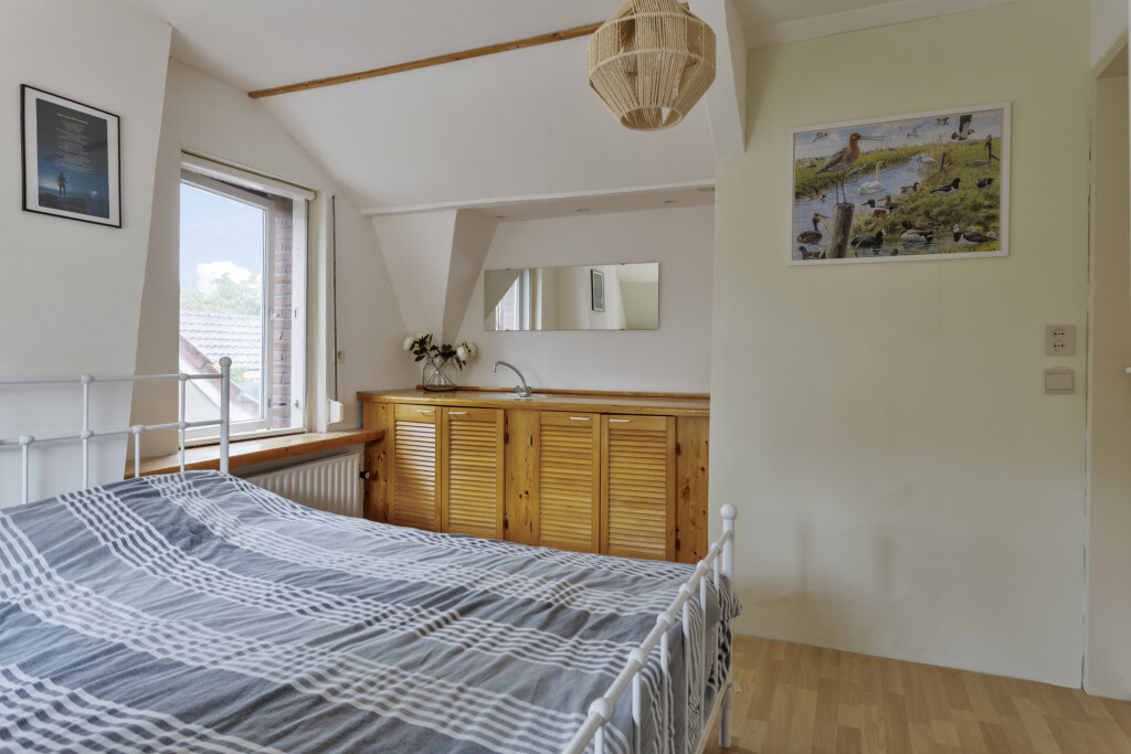 Op de eerste verdieping vind je een overloop die toegang biedt tot vier slaapkamers en een separaat toilet met fonteintje. Eén van de slaapkamers beschikt over een wastafel, waardoor de verdieping erg praktisch is voor een gezin of logees.