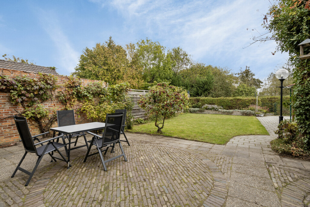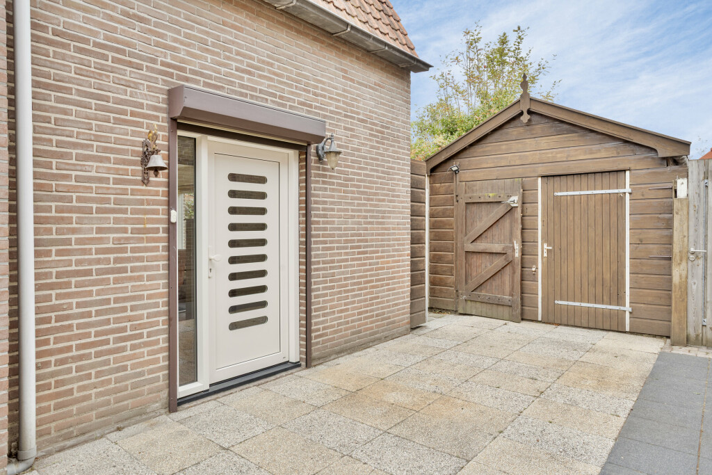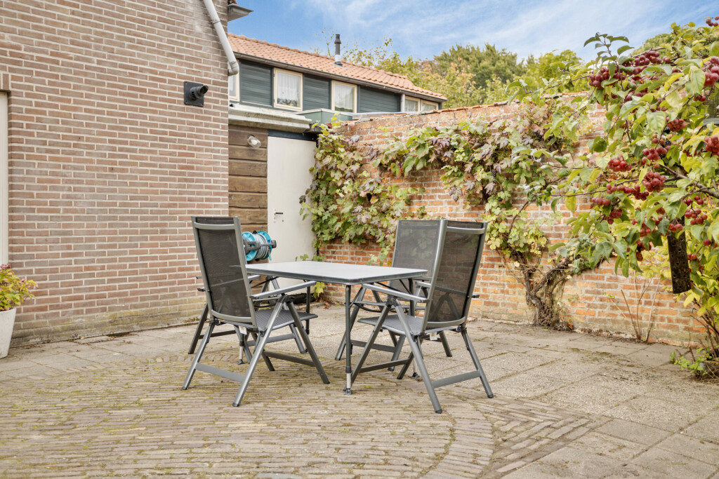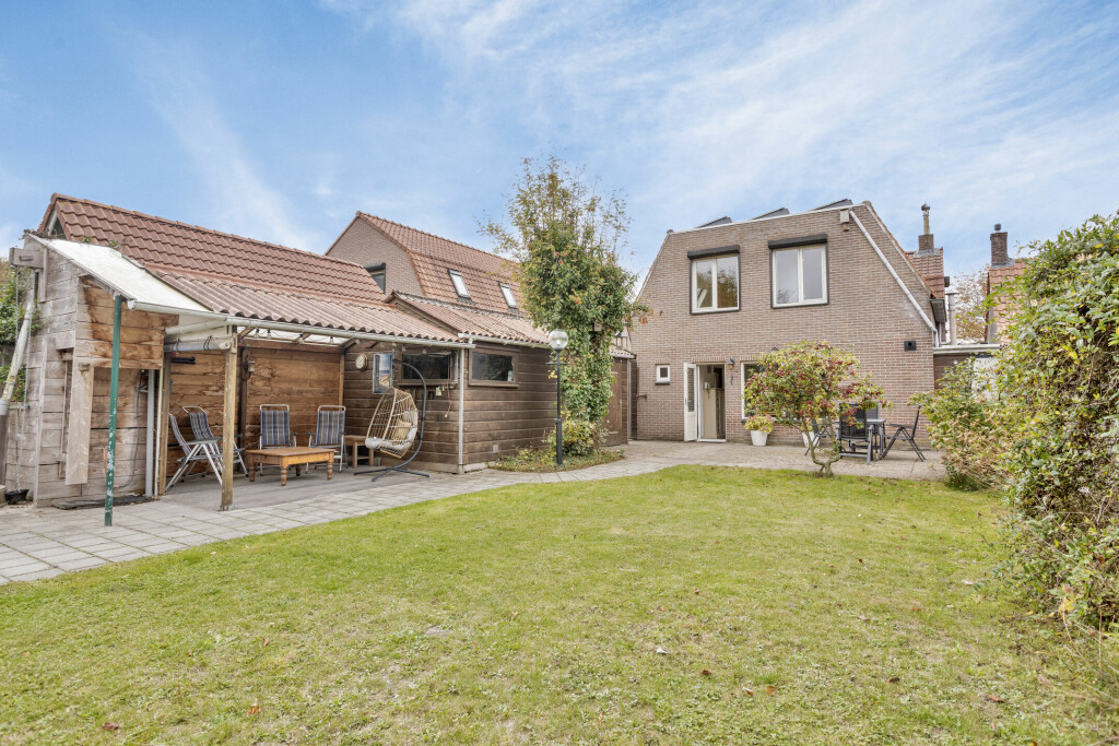De diepe achtertuin, gelegen op het noordoosten, is een echte eyecatcher. Met nette verschillende borders, de houten berging en de gezellige overkapping is dit de ideale plek voor buitenleven en samenzijn met familie en vrienden. Ook is er altijd mogelijkheid om te genieten van de zon en om in de schaduw te zitten. Bovendien is er een vrije achterom, waardoor de tuin praktisch en toegankelijk blijft.