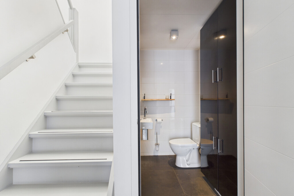 Op de eerste verdieping vind je drie slaapkamers, waarvan de ouderslaapkamer de volledige lengte van de verdieping beslaat. Twee van de kamers geven via een vlizotrap toegang tot de bergzolder. De moderne badkamer is voorzien van een douche, toilet en een wastafel met meubel, waardoor comfort en functionaliteit hand in hand gaan.