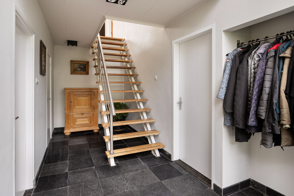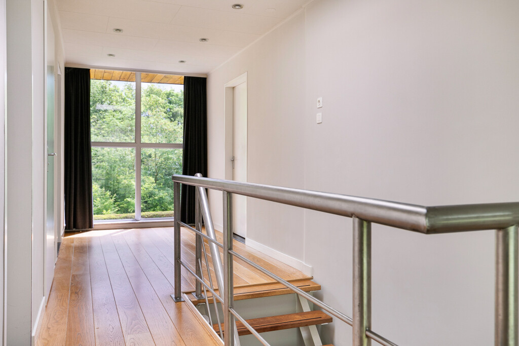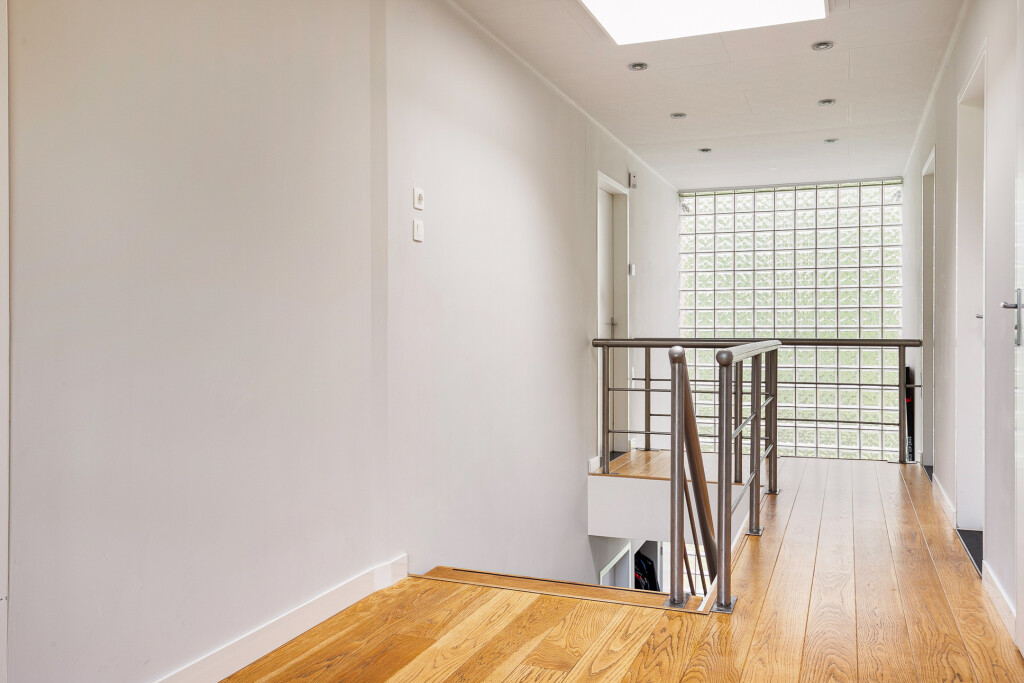 Fraaie, ruime overloop met vide waar je prachtig zicht hebt op de tuin.