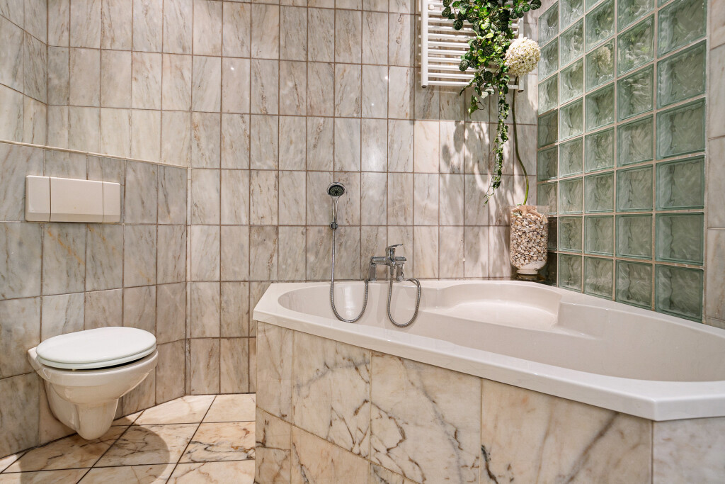 Zowel via de hal als via de bijkeuken is er een deur naar een ruime slaapkamer aan de voorzijde van de woning. De slaapkamer heeft een eigen badkamer. De badkamer is voorzien van een groot ligbad, douche en toilet.