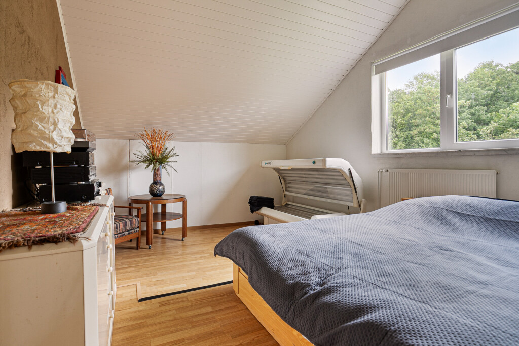 Op deze verdieping zijn 4 ruime slaapkamers. De masterbedroom is voorzien van een ruime kastenwand met daarachter een berging onder de schuine kanten.