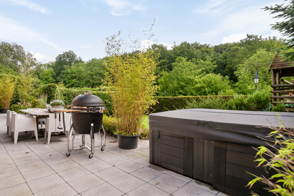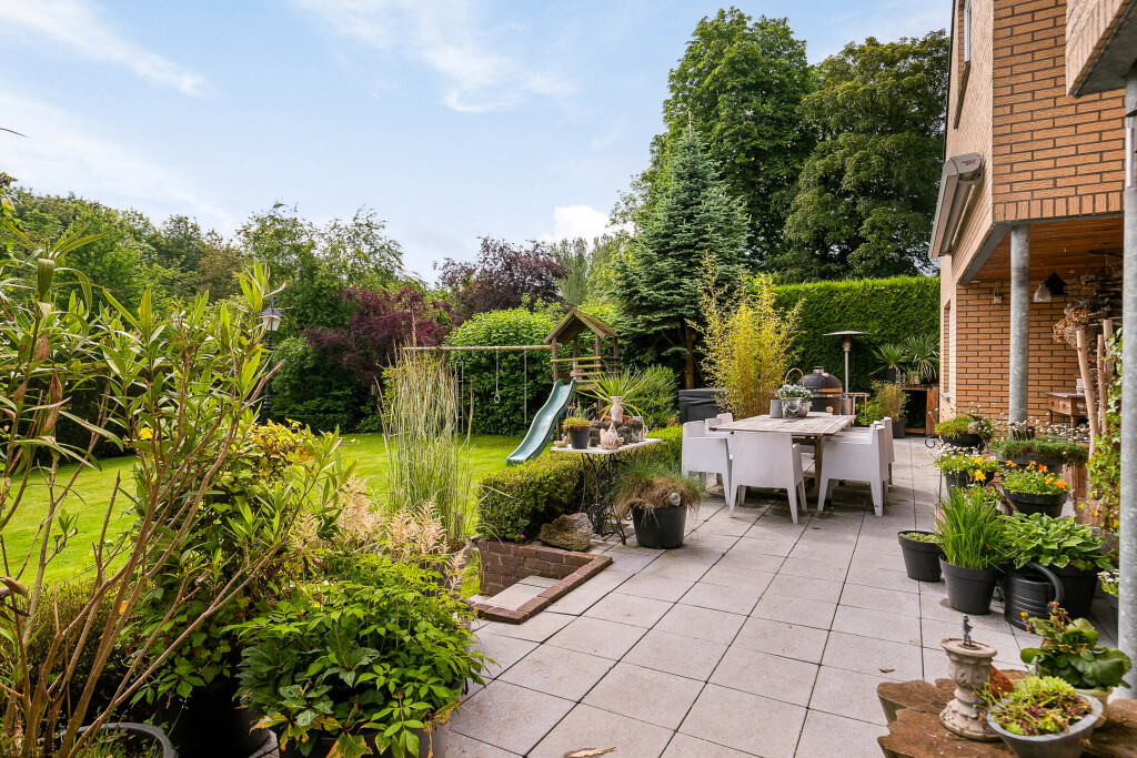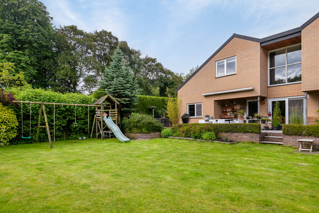 In de ruime zonnige tuin ervaart u een oase van rust en privacy. Er is een verhoogd terras achter de woning met fraai uitzicht over de tuin en het achterliggende natuurgebied. Ook aan de voorzijde van de woning is er een ruime tuin met een grote oprit voor meerdere auto’s.