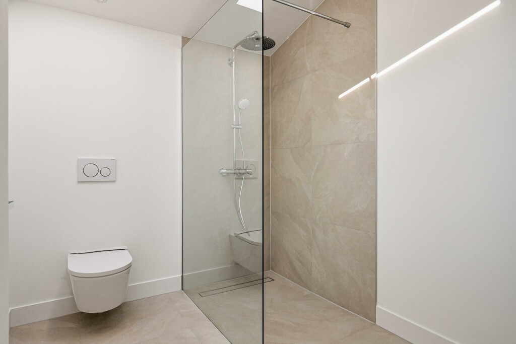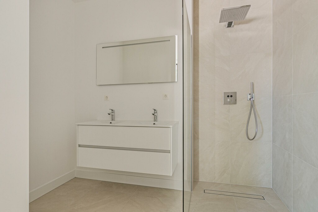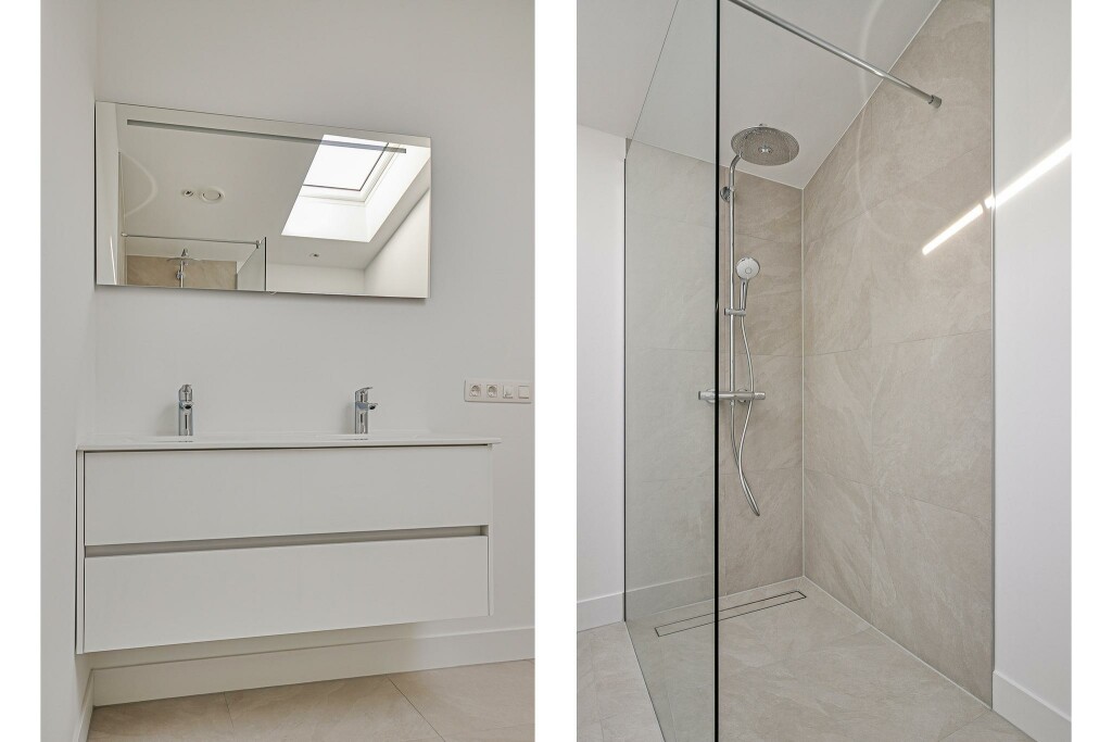 Vanuit de hal kom je in de ruime slaapkamer met airco. De slaapkamer heeft een eigen dressing en badkamer. De badkamer is voorzien van een grote douche, wasmeubel en toilet.