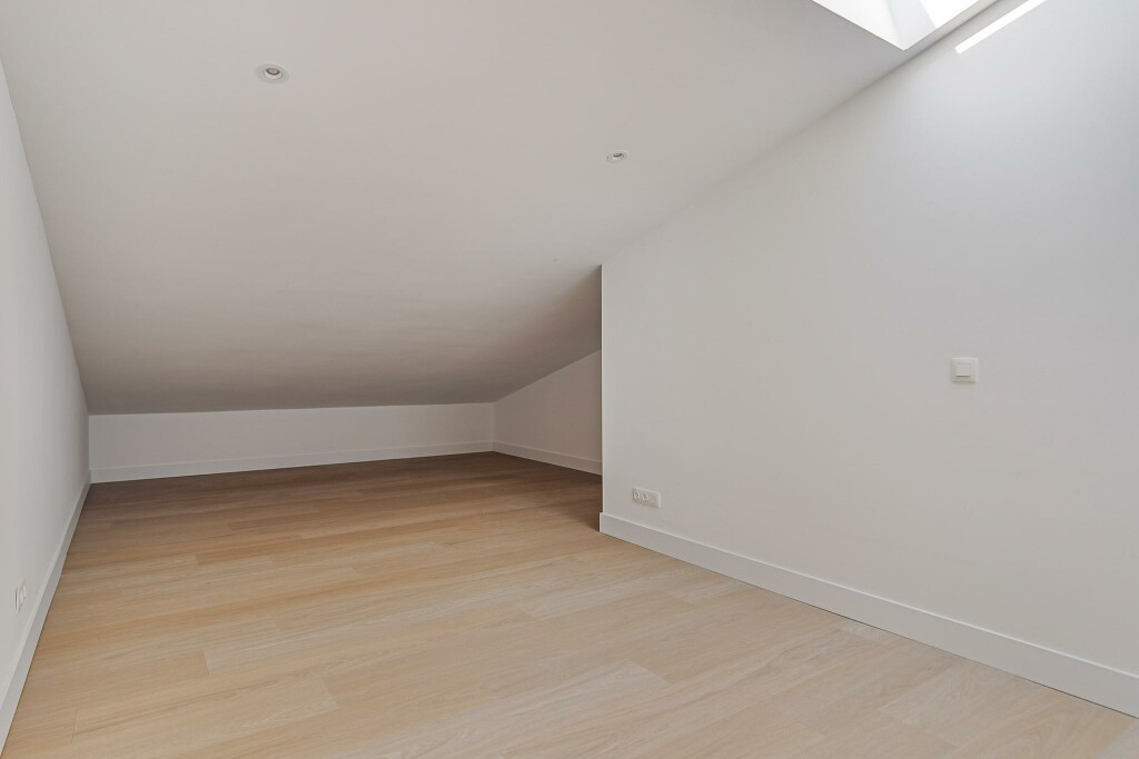 Overloop die toegang biedt tot 2 ruime slaapkamers met hoge raampartijen. De 4e (slaap)kamer heeft een elektrisch bedienbaar dakvenster en heeft een schuin aflopend plafond. Vanuit deze slaapkamer is er toegang tot een technische ruimte met de balansventilatie en omvormer van de zonnepanelen.