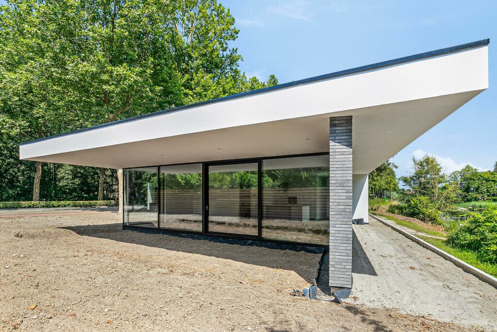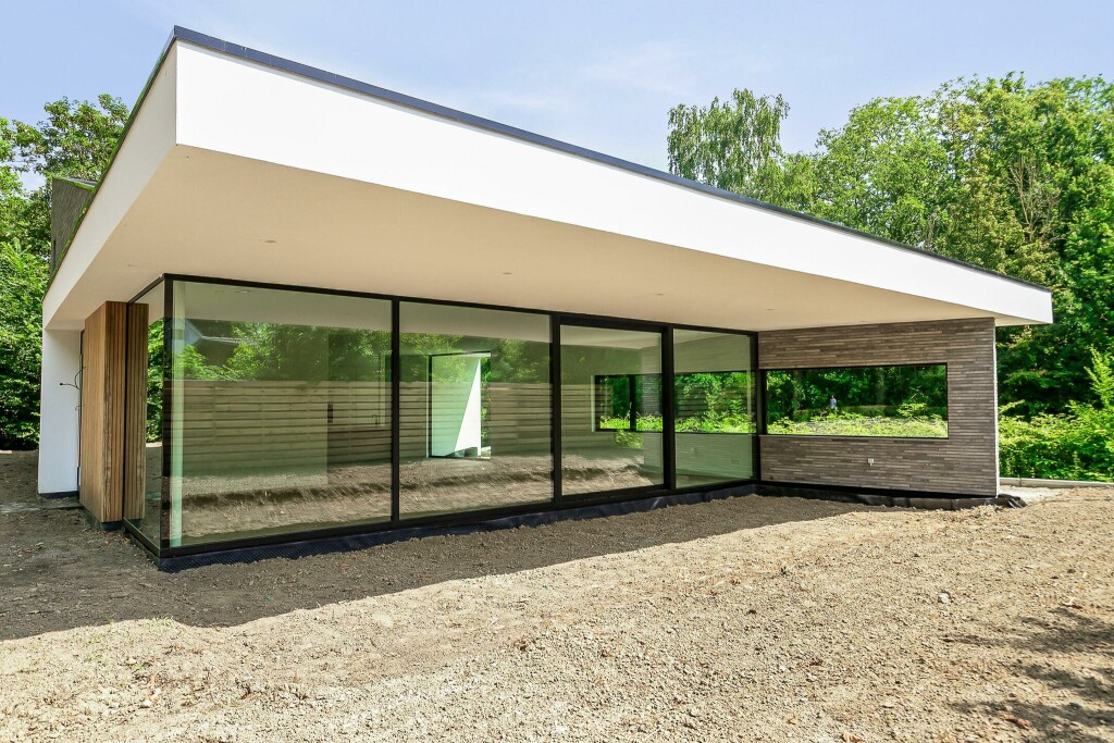De woning is ontworpen door architectenbureau BAAS. Dit architectenbureau is gespecialiseerd in het ontwerpen van luxe, moderne woningen en dat is terug te zien in dit prachtige huis. Alles straalt hier luxe en comfort uit. De woning heeft op de begane grond een riante living met open keuken en grote raampartijen met prachtig uitzicht op het achterliggende bos. Aan de voorzijde van de woning is er een ruime slaapkamer met badkamer en dressing. Zodoende is de woning levensloopbestendig. Verder zijn er op de begane grond nog een bijkeuken en een inpandige garage. Op de verdieping zijn er 3 prachtige slaapkamers, een ruime badkamer en een technische ruimte. Ook voor een gezin is het hier dus heerlijk wonen.