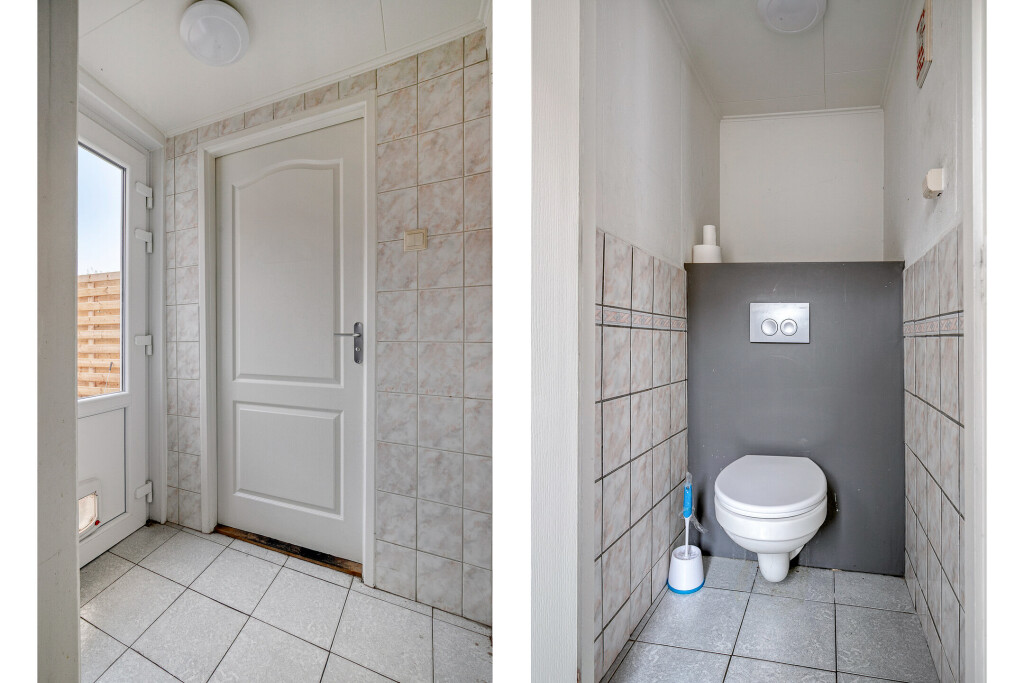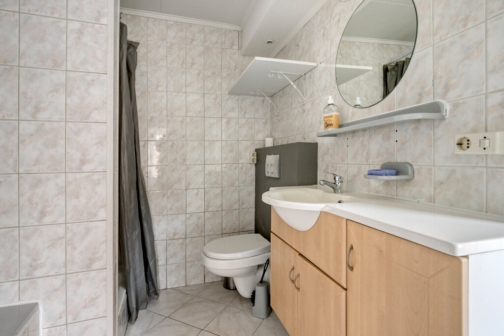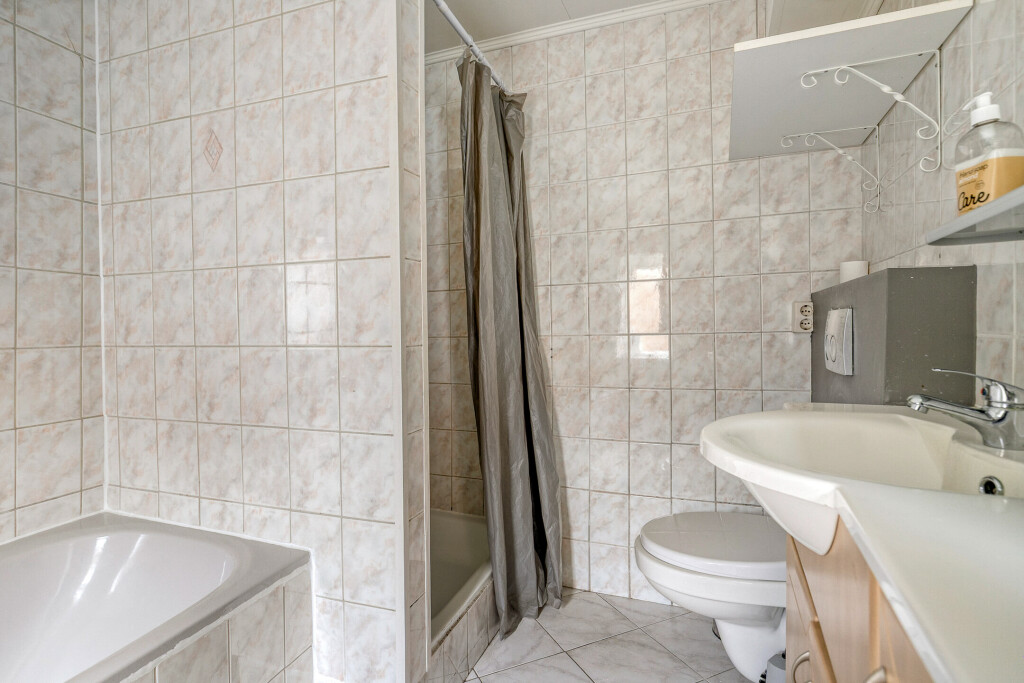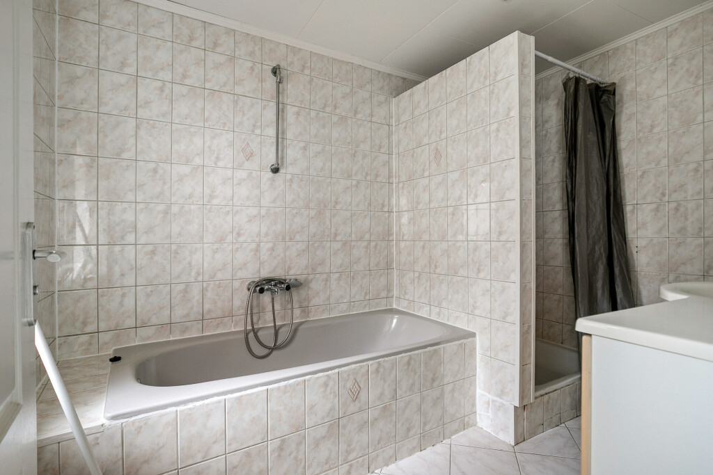 Op de begane grond bevindt zich de badkamer, compleet met ligbad, douche, wastafel en toilet. Ook hier is modernisering gewenst, maar de indeling biedt een fijne basis om mee te werken.
