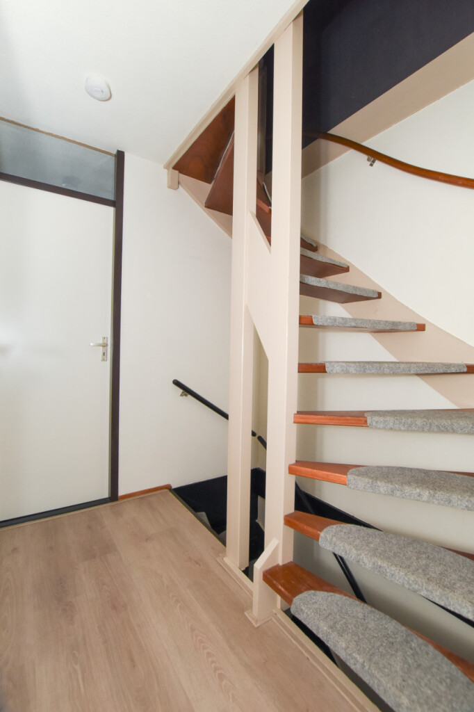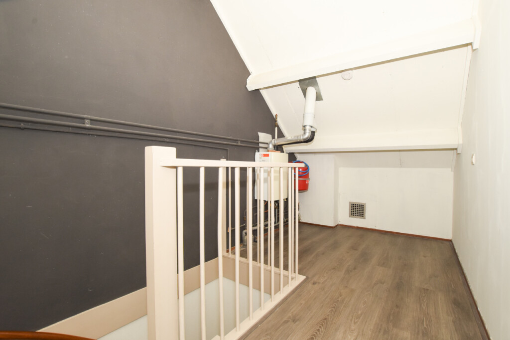Vaste trap naar de zolderverdieping met op de overloop de c.v-installatie (Remeha ’09). Verder is hier nog een ruime 4e slaapkamer.