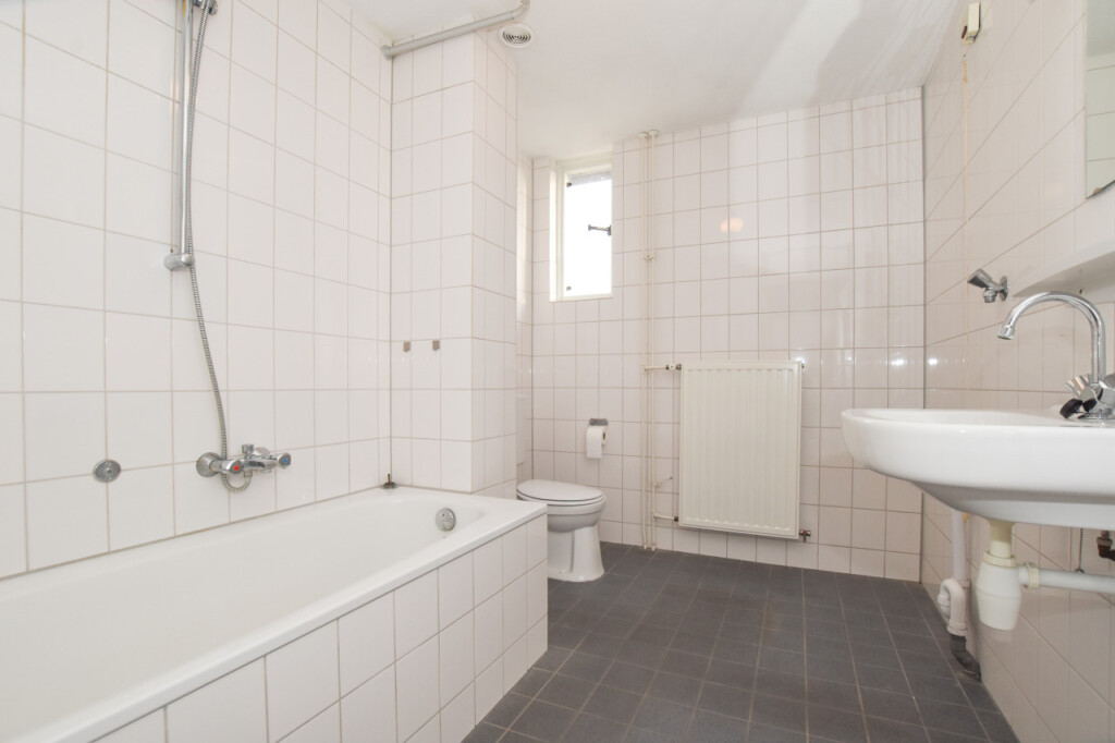 Overloop die toegang biedt tot 3 fijne slaapkamers. De ruime badkamer heeft een bad/douchecombinatie, een wastafel en een 2e toilet. Tevens is hier de aansluiting voor de wasapparatuur.