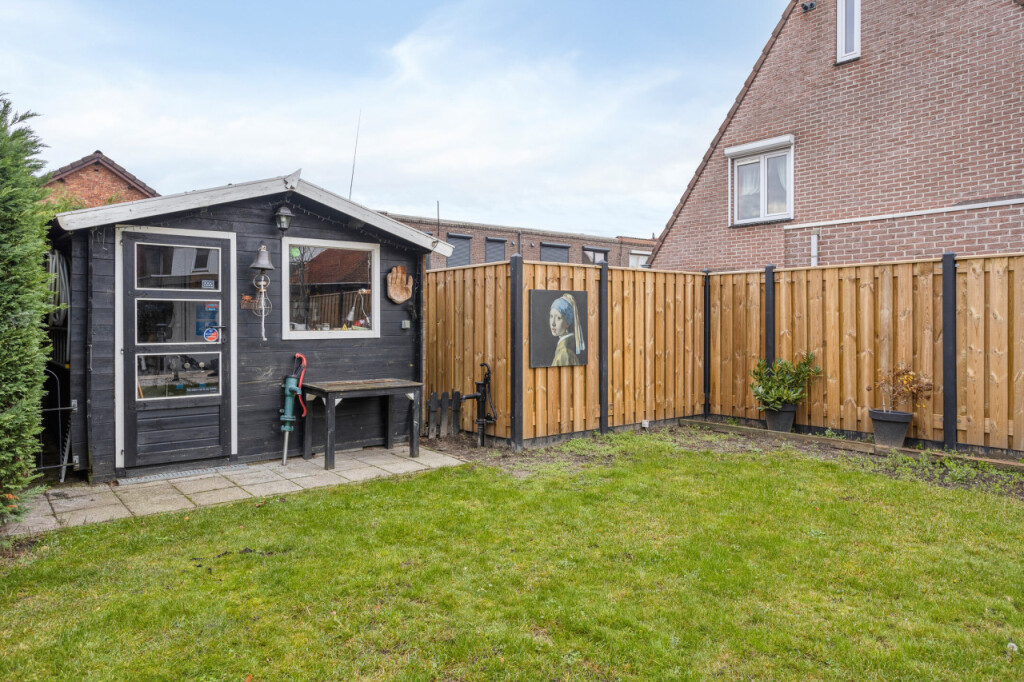 De diepe achtertuin is een fijne plek om te genieten van rust en buitenleven. Er is volop ruimte om te spelen, loungen of tuinieren. De houten berging biedt extra opbergruimte en via de praktische achterom loop je zo naar buiten. Een heerlijk huis op een fijne plek; klaar om zo te betrekken!