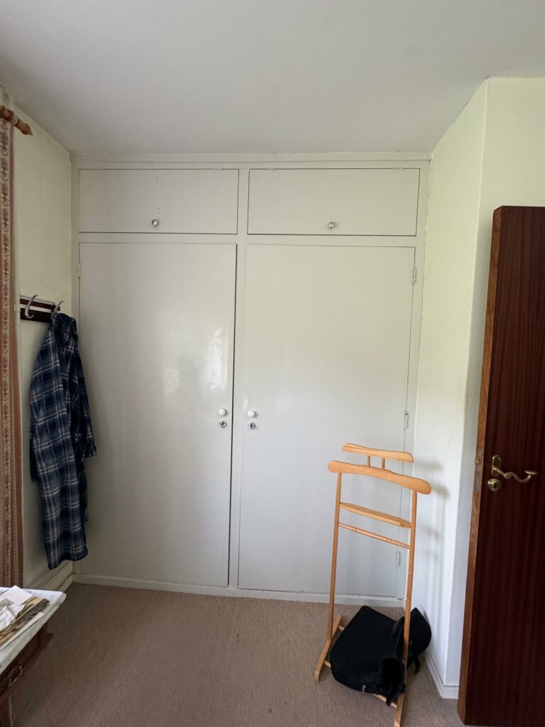 Overloop met toegang tot twee slaapkamers en een praktische bergruimte.