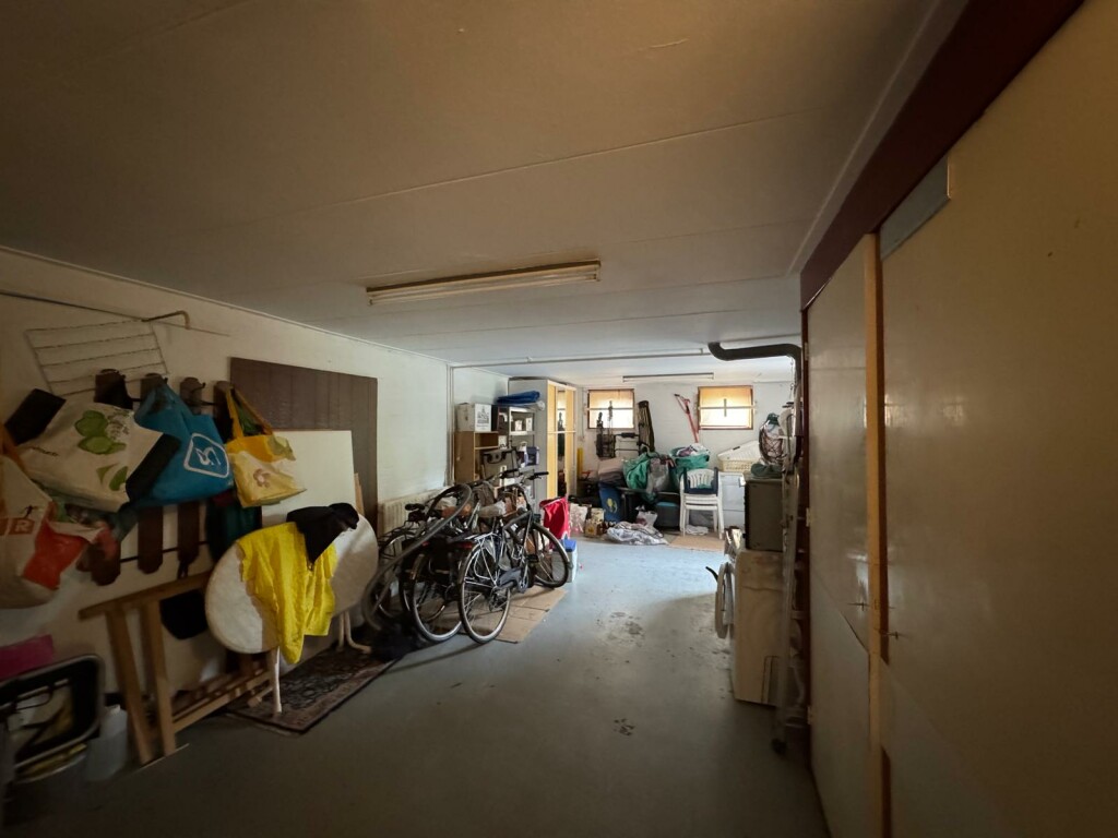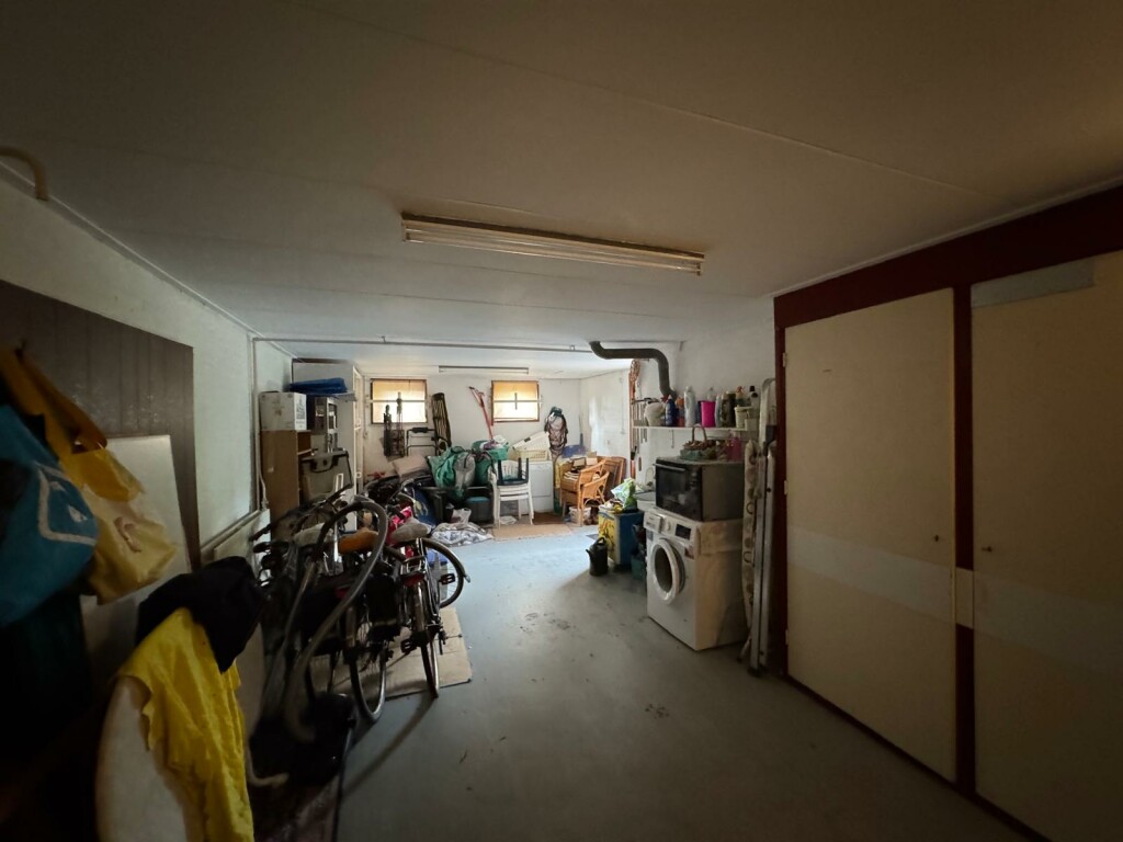De ruime garage biedt plaats aan één auto en beschikt over extra bergruimte. Deze is zowel van buitenaf als via de hal bereikbaar.