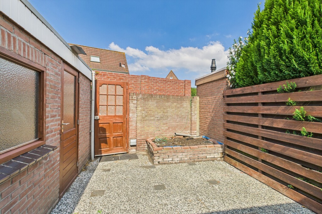 De tuin is via de achterdeur in de keuken bereikbaar en is gelegen op het westen. Je kan hier volop genieten van de middag- en avondzon. De vrije achterom is afgesloten met een poort en in de stenen berging (ca 8 m2) is plek genoeg voor tuingereedschap, fietsen, etc..