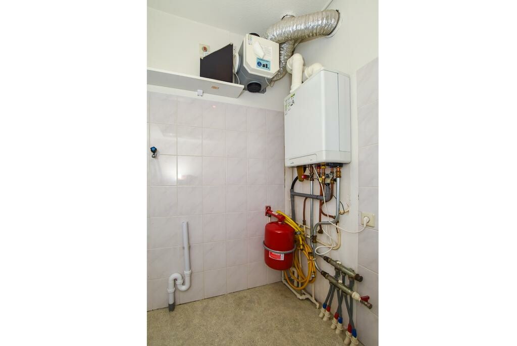 Entree appartement in de hal met een nieuwe PVC-vloer, meterkast, toilet, bergkast met de c.v (Intergas ‘14) en de wasmachineaansluiting.