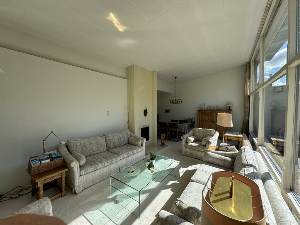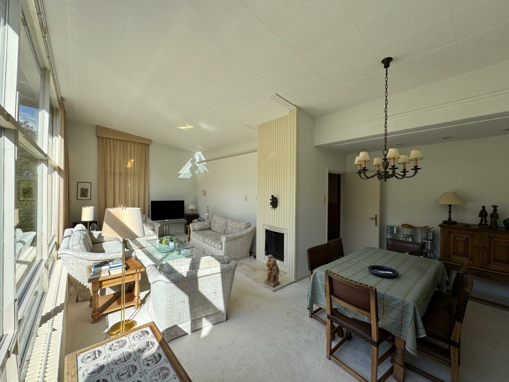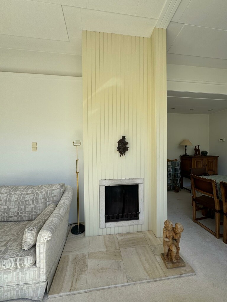 - woonkamer met open haard en tuindeuren naar de zonnige achtertuin