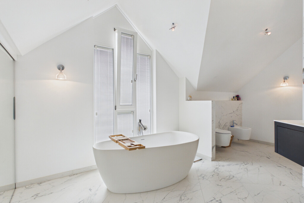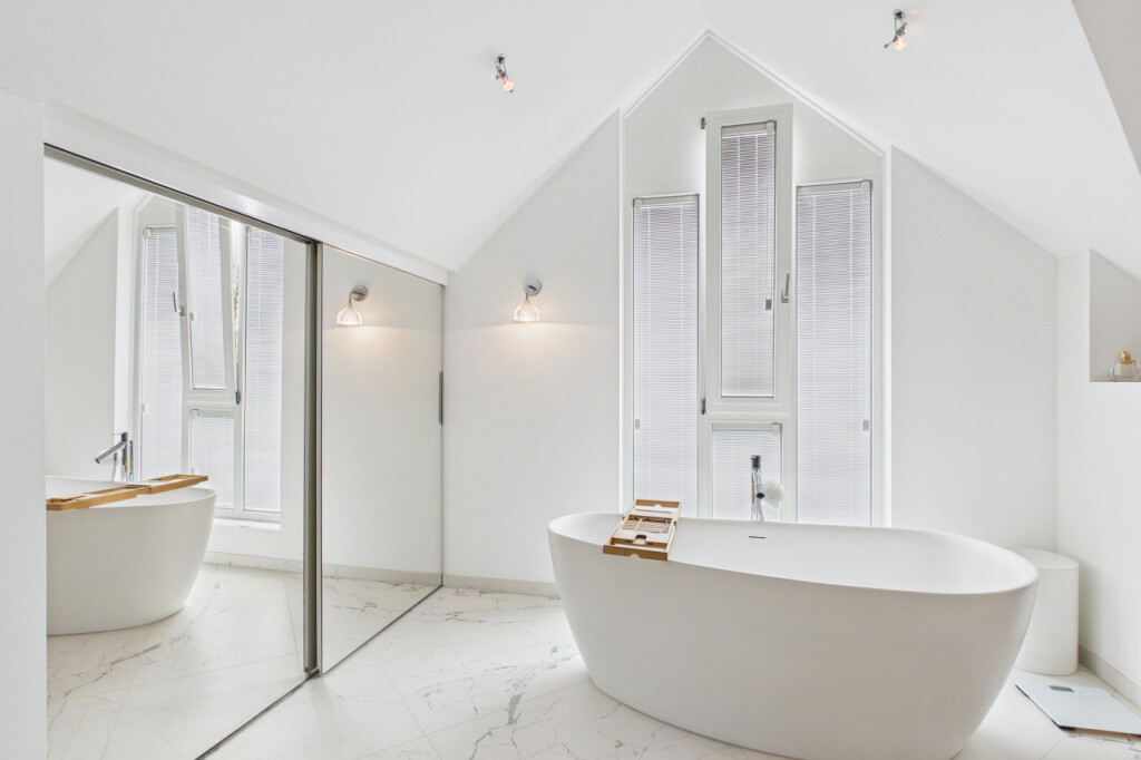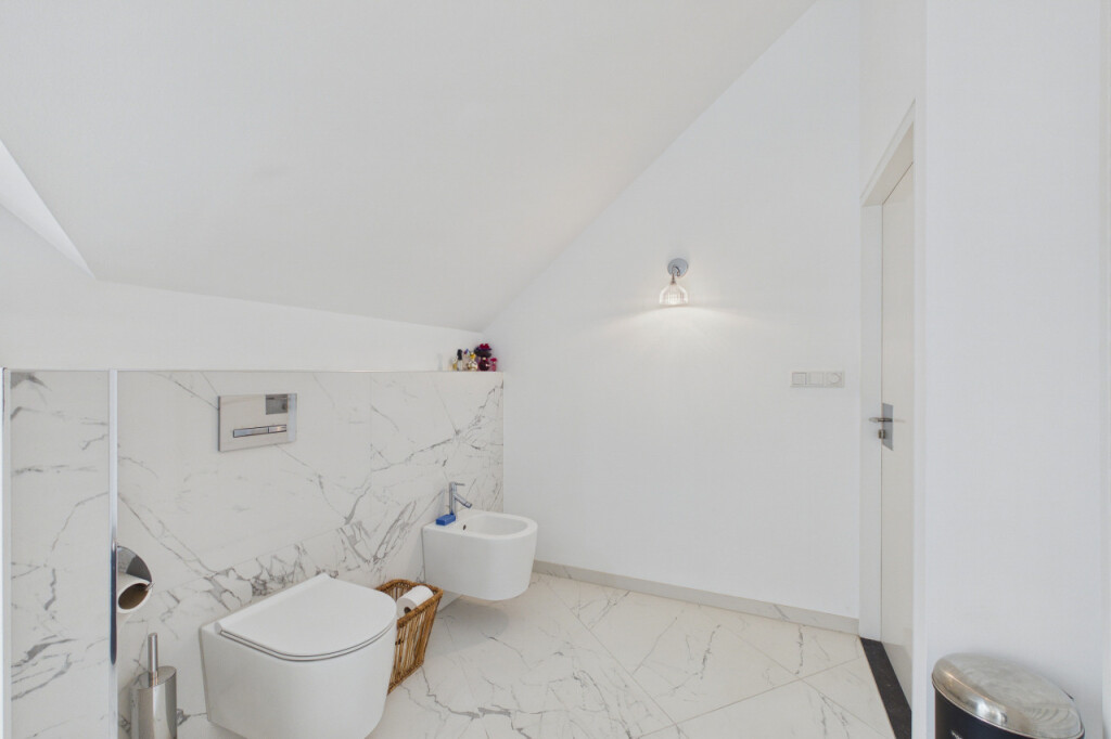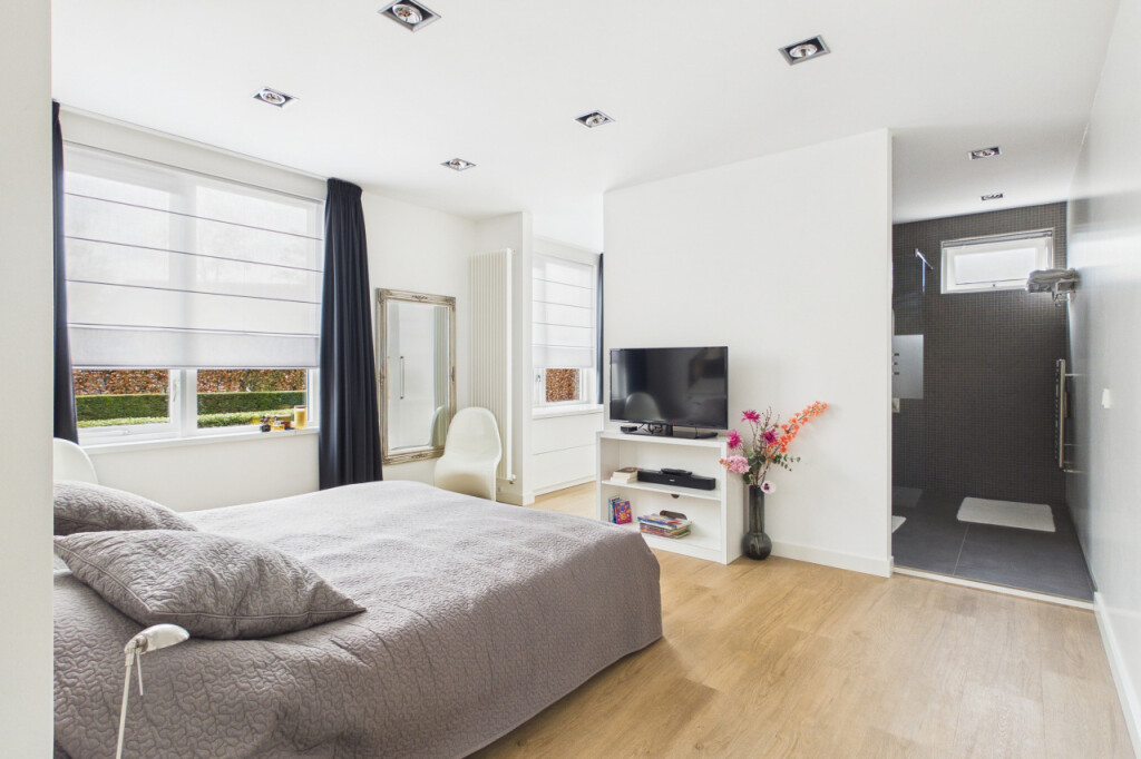 Op de eerste verdieping bevinden zich nog eens drie slaapkamers, alle voorzien van vaste kasten. Deze kamers bieden veel flexibiliteit en zijn ideaal als extra slaapkamers, hobbyruimte of werkruimte. Daarnaast zijn nog twee inloopkasten voorzien op de overloop. Direct naast de grootste slaapkamer bevindt zich een werkelijk schitterende badkamer uit 2022. Deze luxe ruimte is afgewerkt met wit marmer en uitgerust met een vrijstaand ligbad, een inloopdouche met luxe regendouche, een dubbel wastafelmeubel, een bidet en een toilet. Een badkamer die voelt als een privé wellnessruimte.