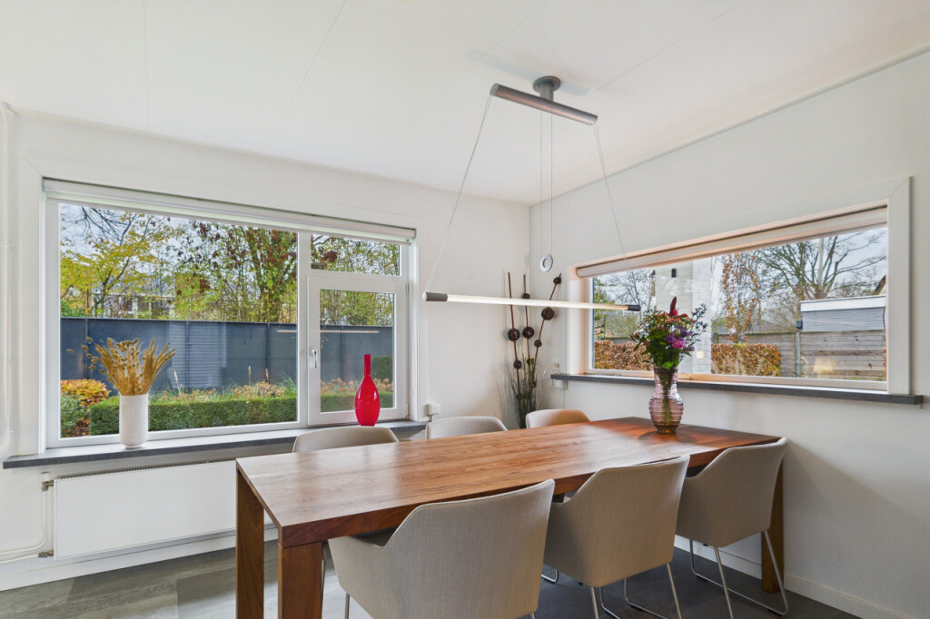 - Rondom voorzien van kunststof kozijnen met HR++ glas en rolluiken