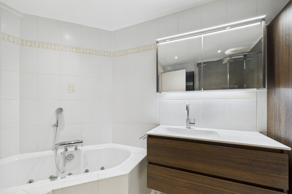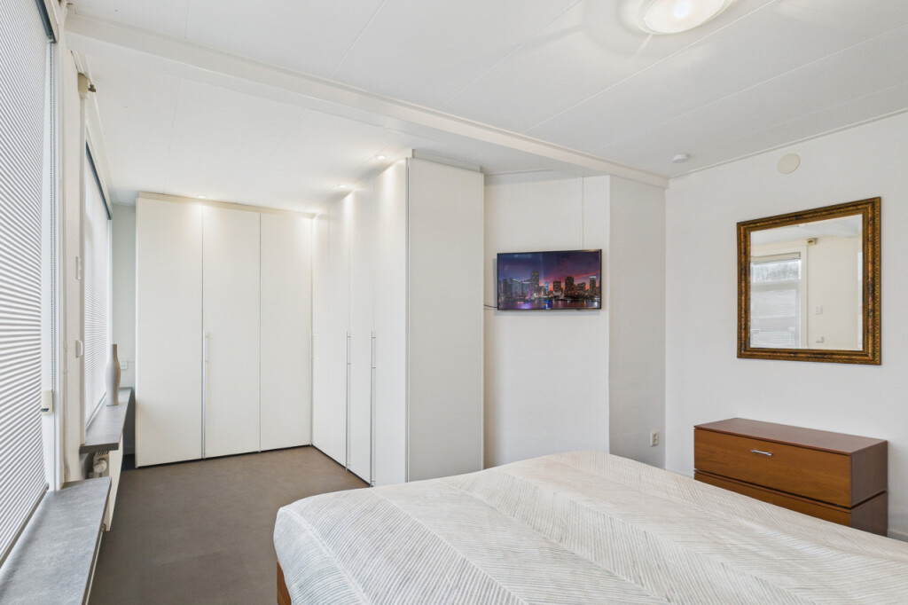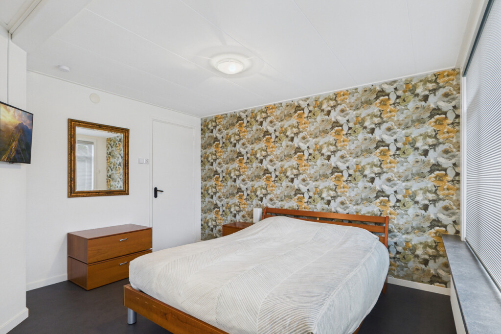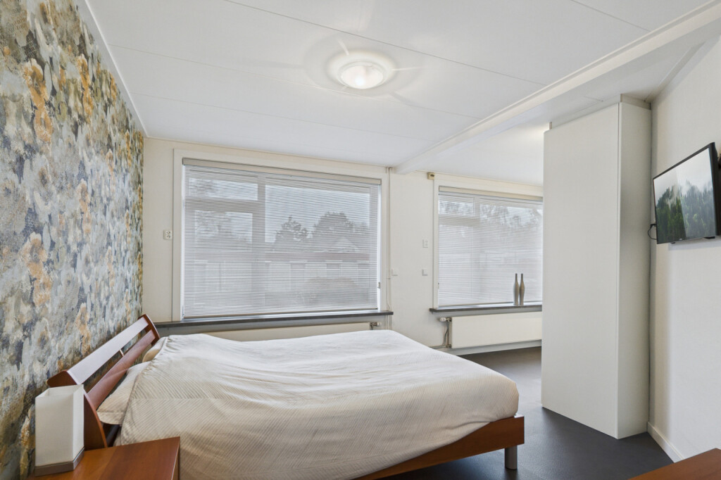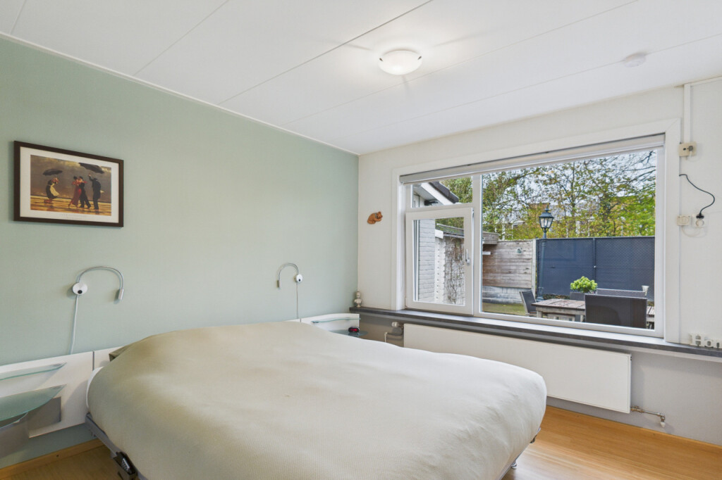 Aan de voorzijde bevindt zich een royale slaapkamer met kastenwand (voorheen 2 slaapkamers). Verder vind je op de begane grond het toilet met fonteintje, een tweede slaapkamer en de badkamer met hoekdouche, jetstream bad, wastafel met meubel, bergkast en design radiator.